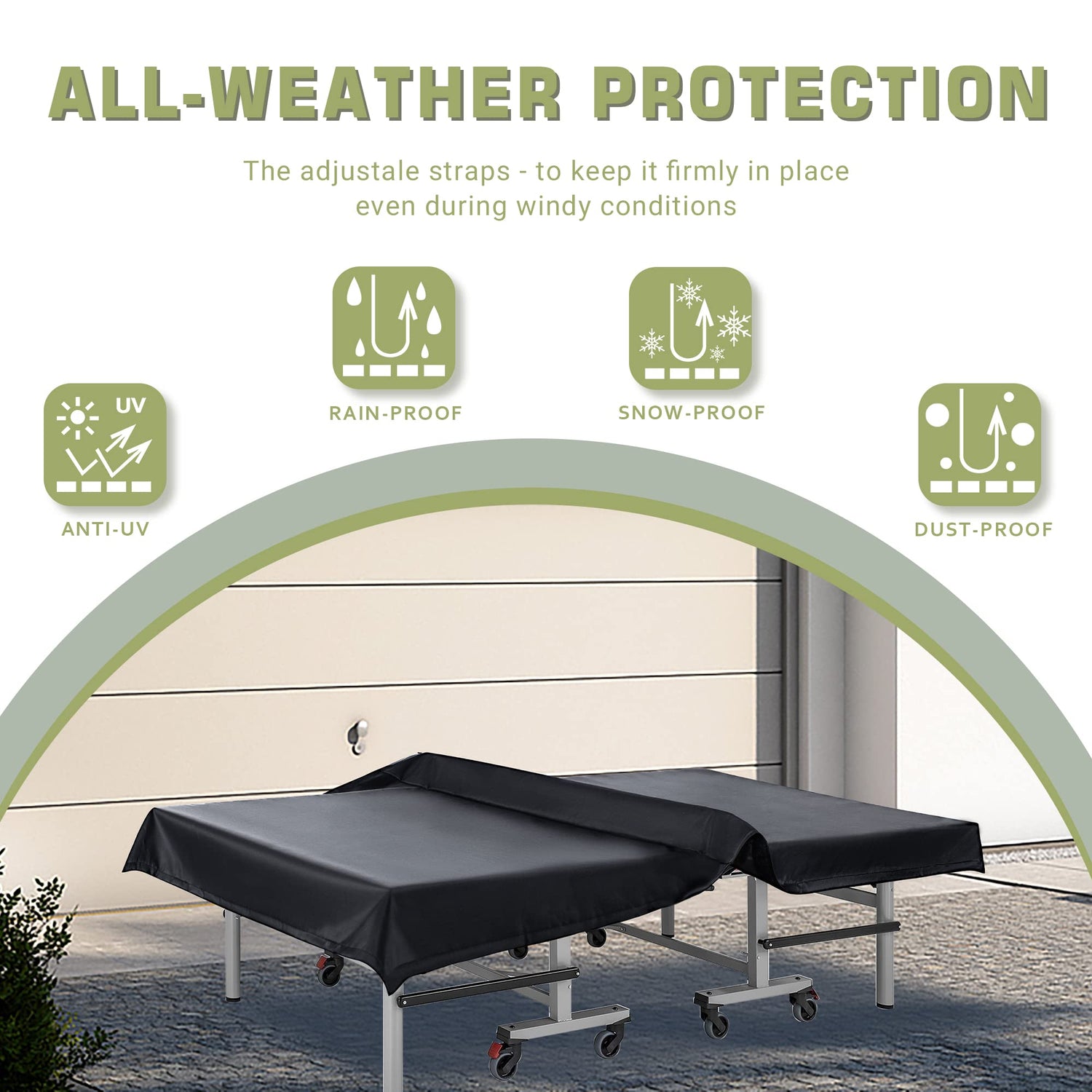 Golkcurx Ping Pong Table Cover,Table Tennis Cover Waterproof Sunproof Indoor & Outdoor Fits Universal 9x5 FT Tables (Black) (Outdoor)