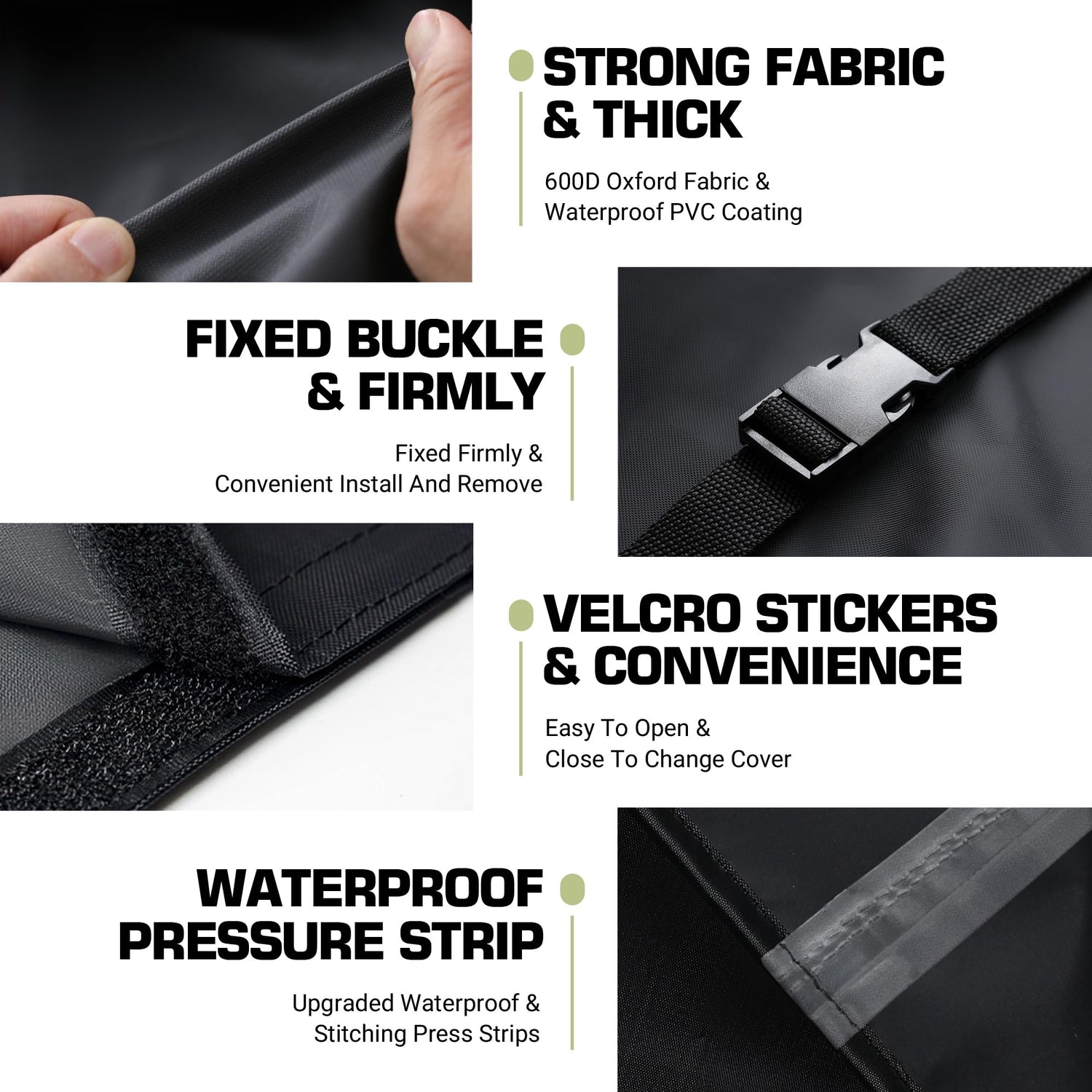 • 【Waterproof Material】It is made of 420D polyester canvas material with PVC coating to protect against UV, water, dust, snow, and more. Upgraded seam sealing with adhesive further enhances waterproof performance.