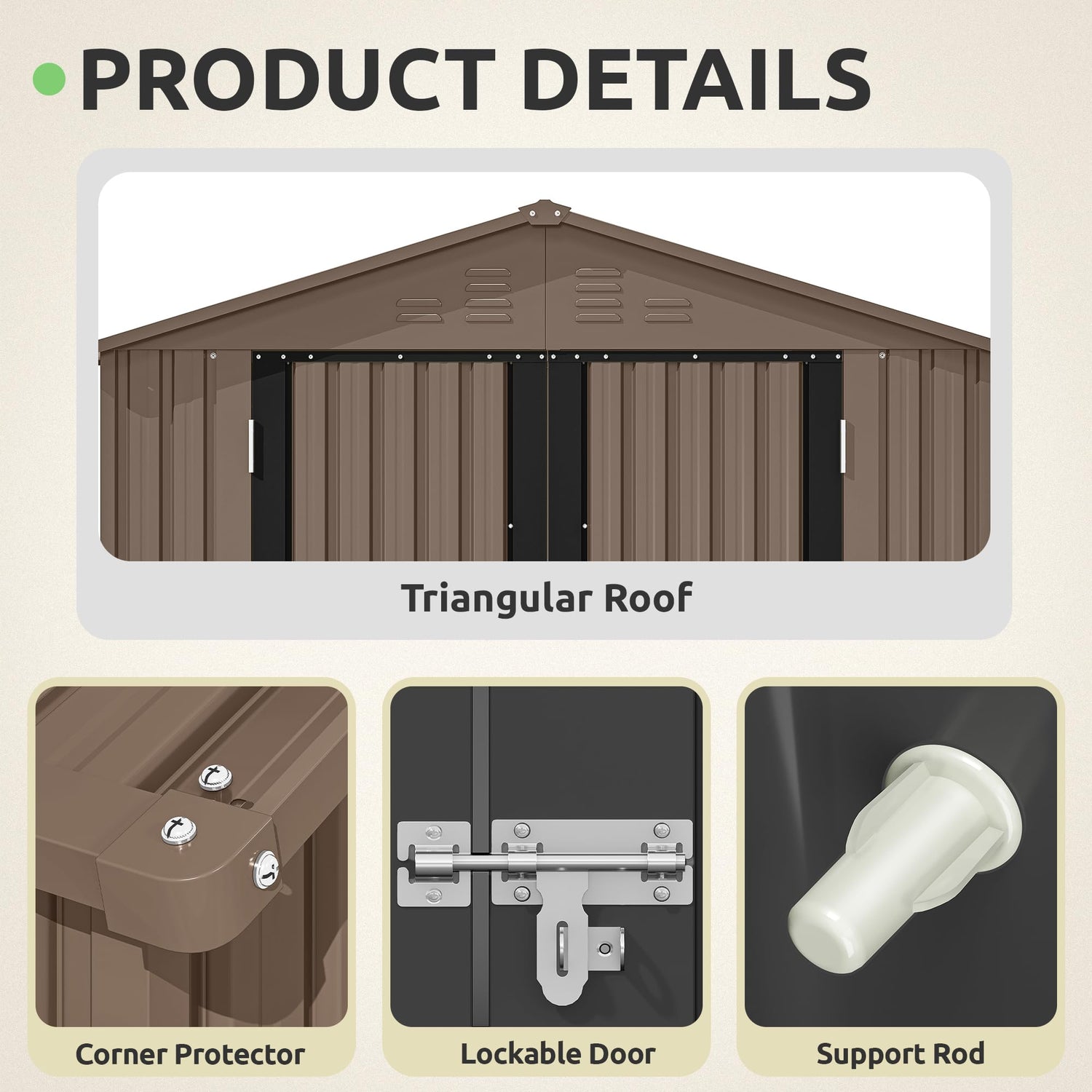 - Built to Brave the Elements: Crafted with thickened galvanized steel and a weather-resistant frame, this garden storage shed is designed to stand up to sun, rain, and snow; Overlapping wall panels and a sloped roof keep your tools and gear dry year-round