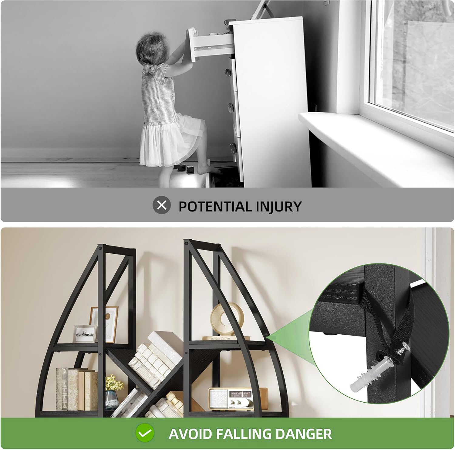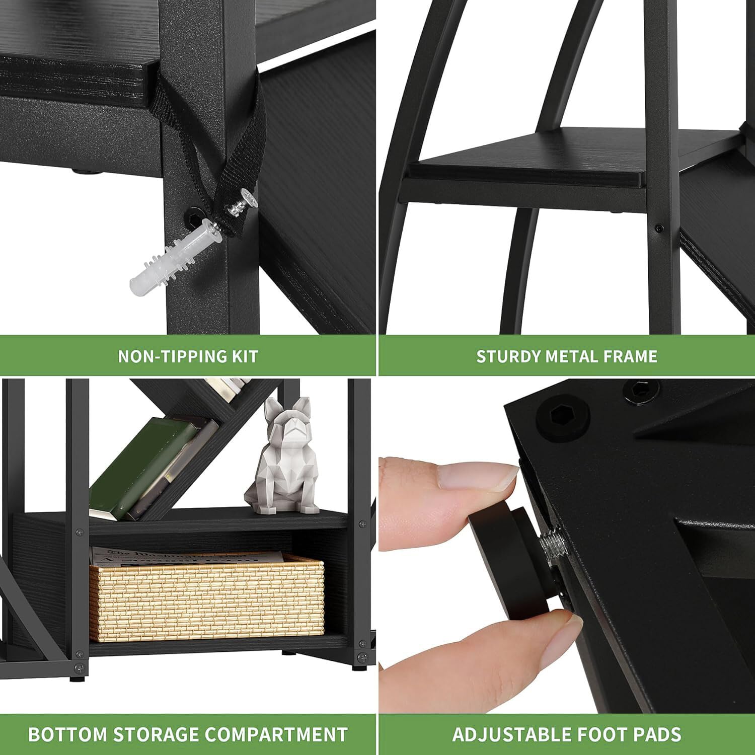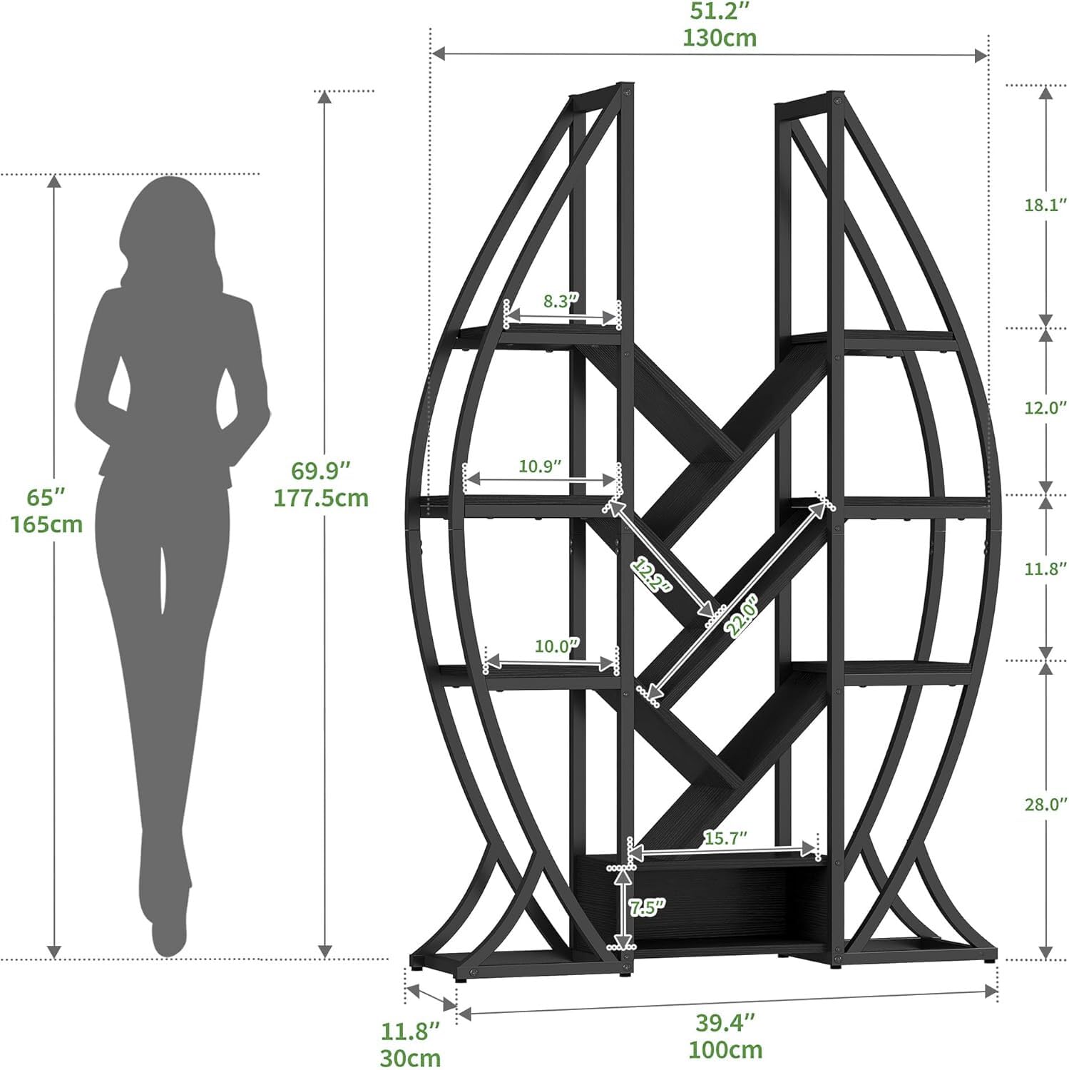 GOOBED Oval Bookshelf, Triple Wide 5 Tier Etagere Bookcase, Industrial Display Shelves Tree Bookshelf for Living Room, Bedroom, Home Office, Black
