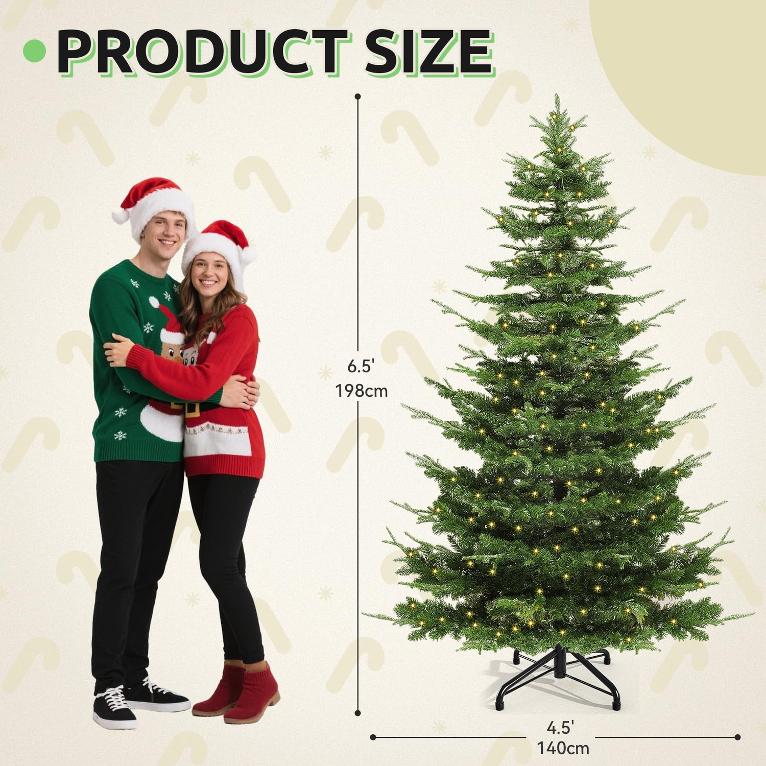 GOOBED Prelit Aspen Fir Realistic Christmas Tree 6.5ft with Remote Control, Pre-lit Hinged Xmas Tree with Glittering Diamond Tips, Holiday Decor for Holidays, Parties, Green