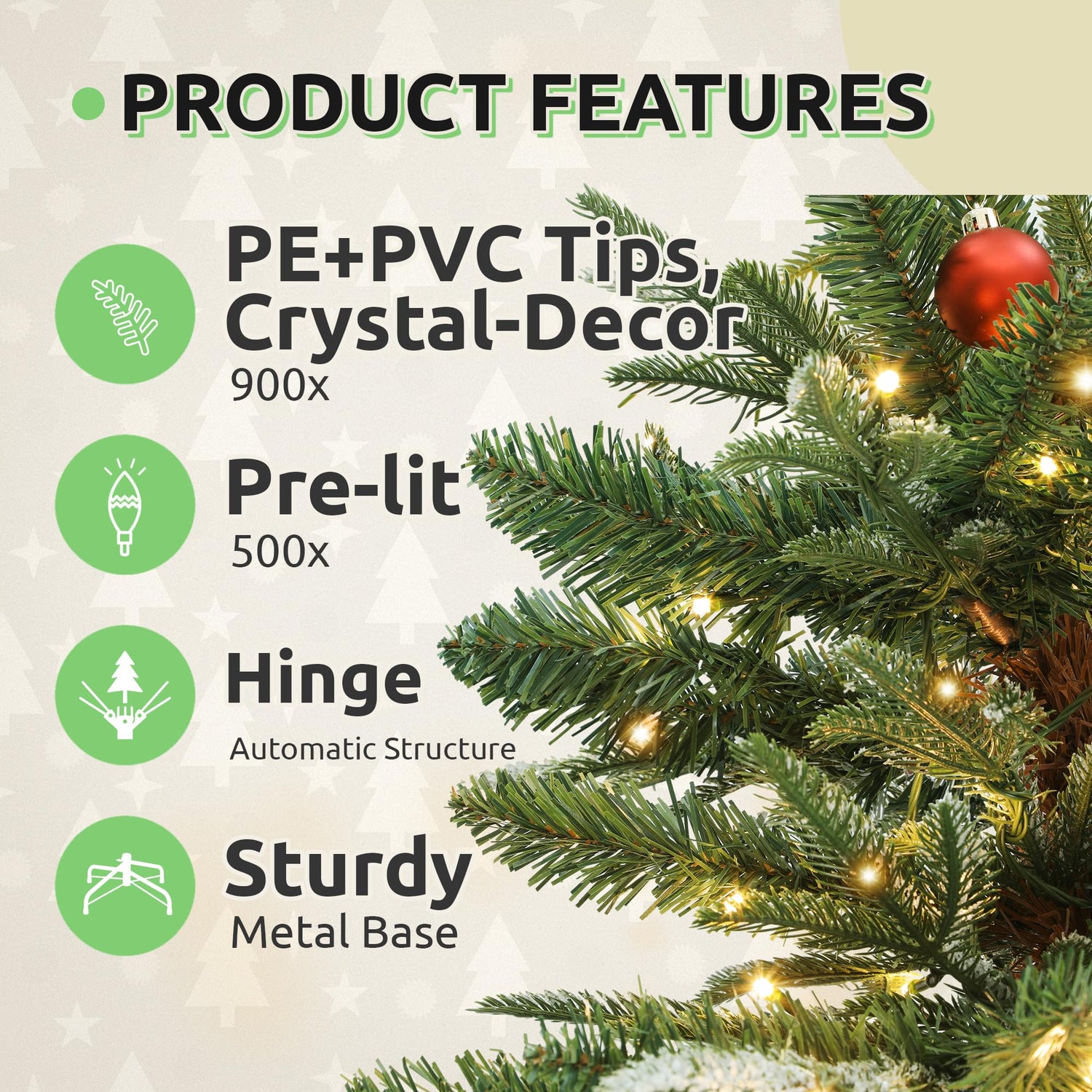 - Twinkling Christmas Tree: Crafted with 900 mixed PE and PVC tips, this 6.5ft tree mimics a real Aspen Fir, complete with velvet layering and glitter detail. Its full-bodied shape and textured needles add depth and seasonal charm