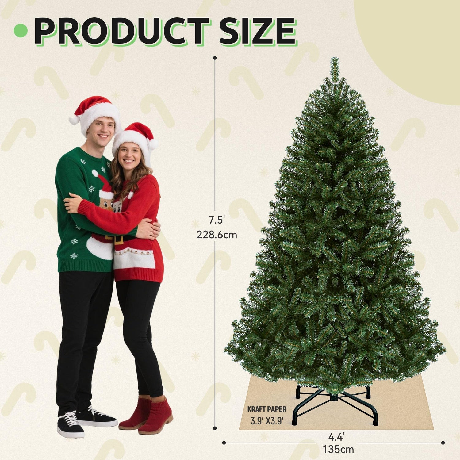 GOOBED Prelit Green Christmas Tree 7.5FT with Remote Control, Pre-Lit Green Artificial Hinged Spruce Christmas Tree with 1450 Tips, 550 LED Lights and 11 Light-Modes for Home, Party Decoration