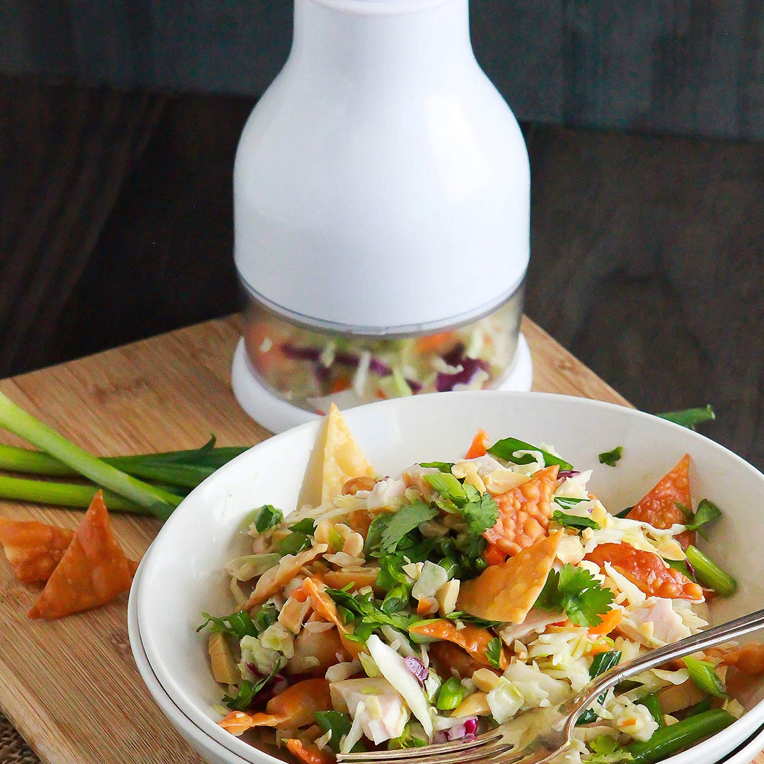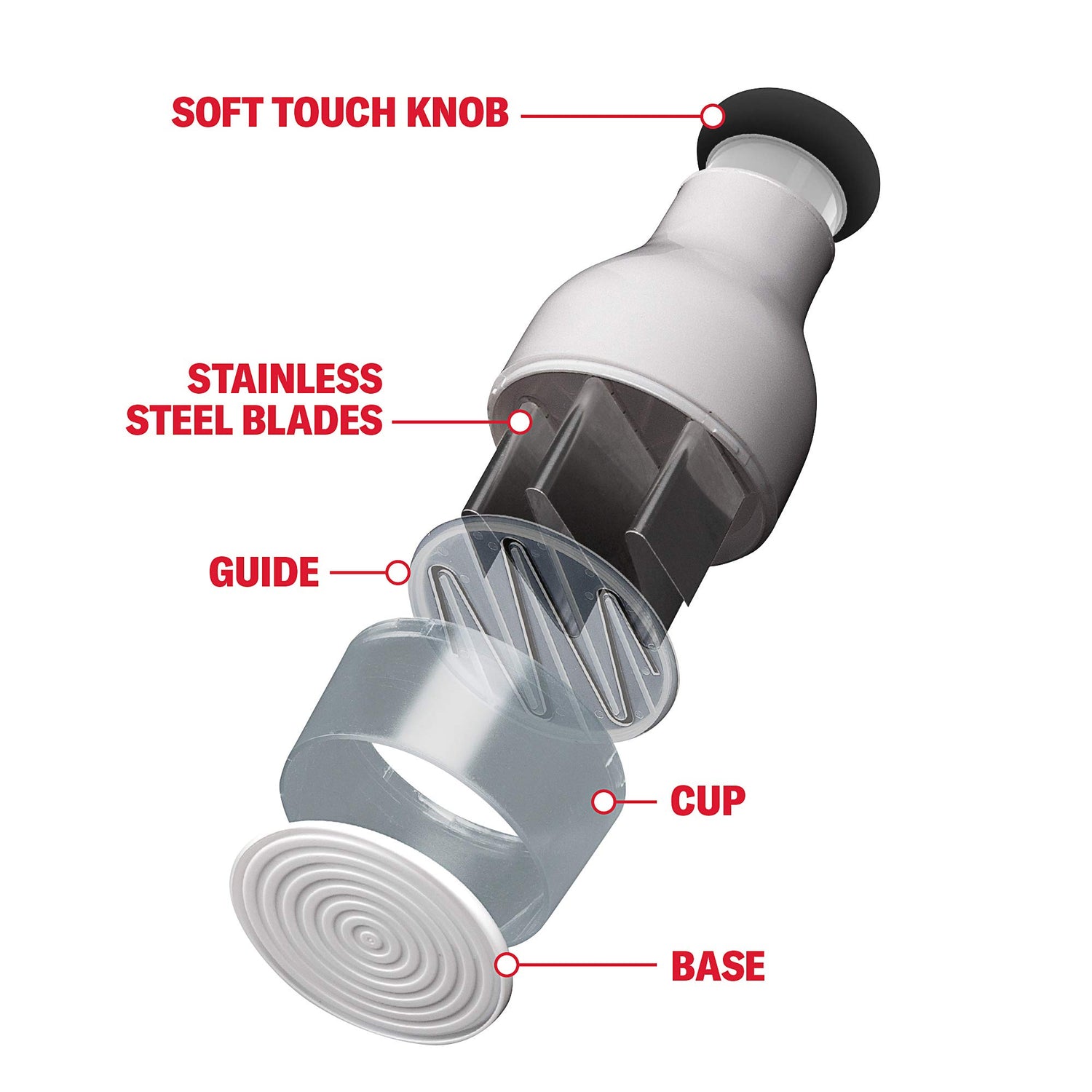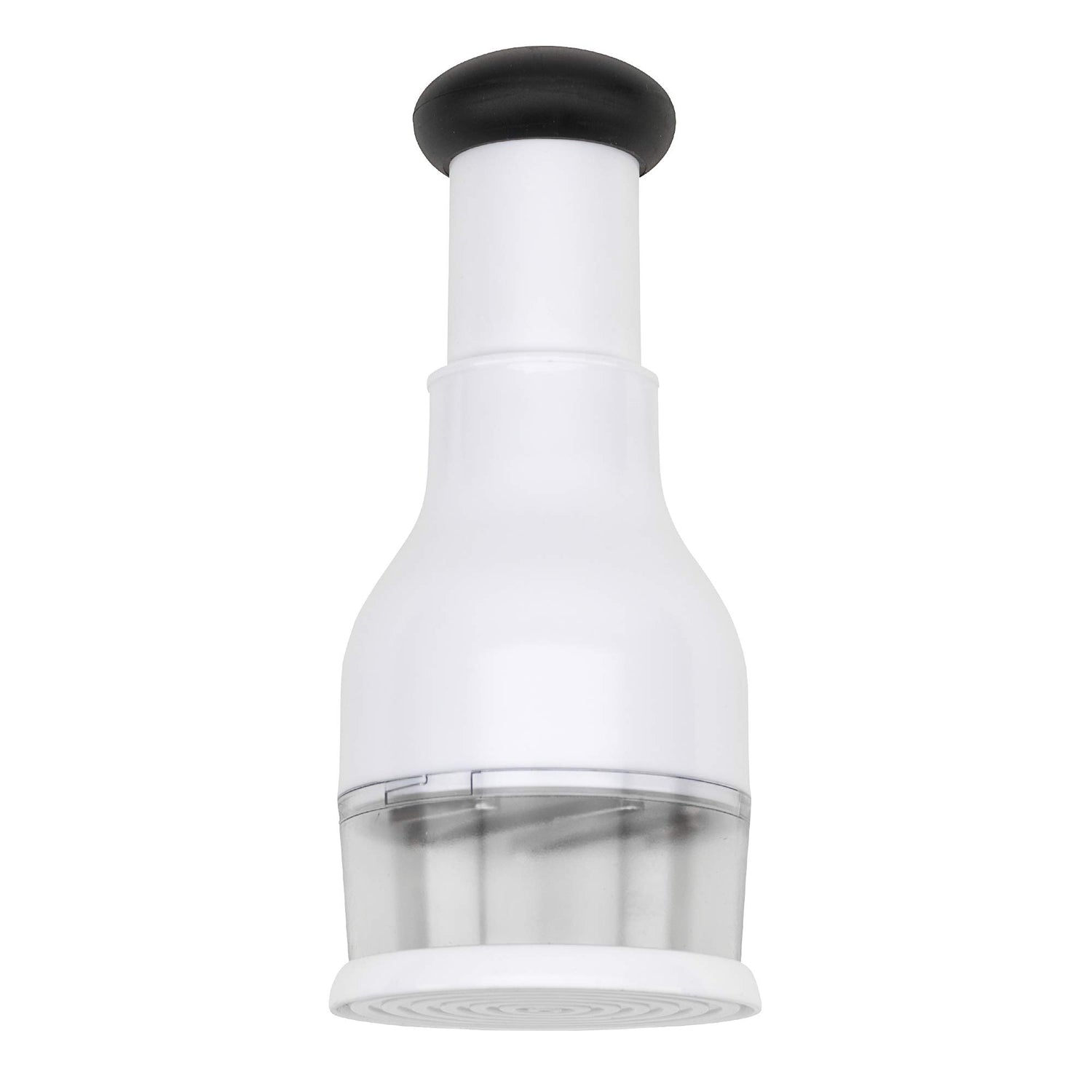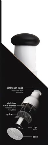 Details: Chopper Deluxe food chopper. Removable base allows for chopping in or out of the cup. steel blades, dishwasher safe.