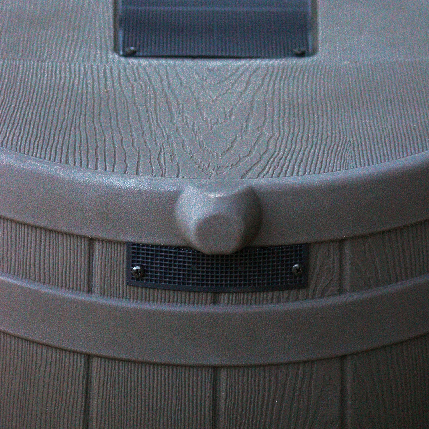 - Rain barrel has a 50-gallon rainwater capacity and measures 22 inches in diameter by 30 inches high with a weight of 19 pounds