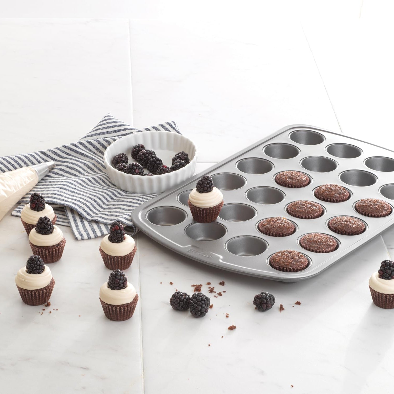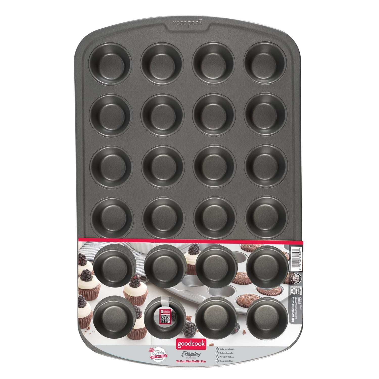 - 24-CUP MINI MUFFIN PAN: Upgrade your kitchen with this GoodCook Muffin Pan for your favorite bite-sized muffin and cupcake recipes. The 1-7/8-inch diameter cups create a perfect shape for delicious and professional looking baked goods.