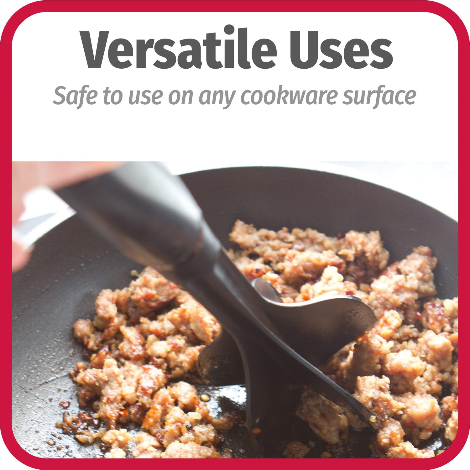 - VERSATILE USES: Breaks up food consistently to ensure even cooking and browning in the pan, and the versatile design can also be used for mashing potatoes or cooking vegetables