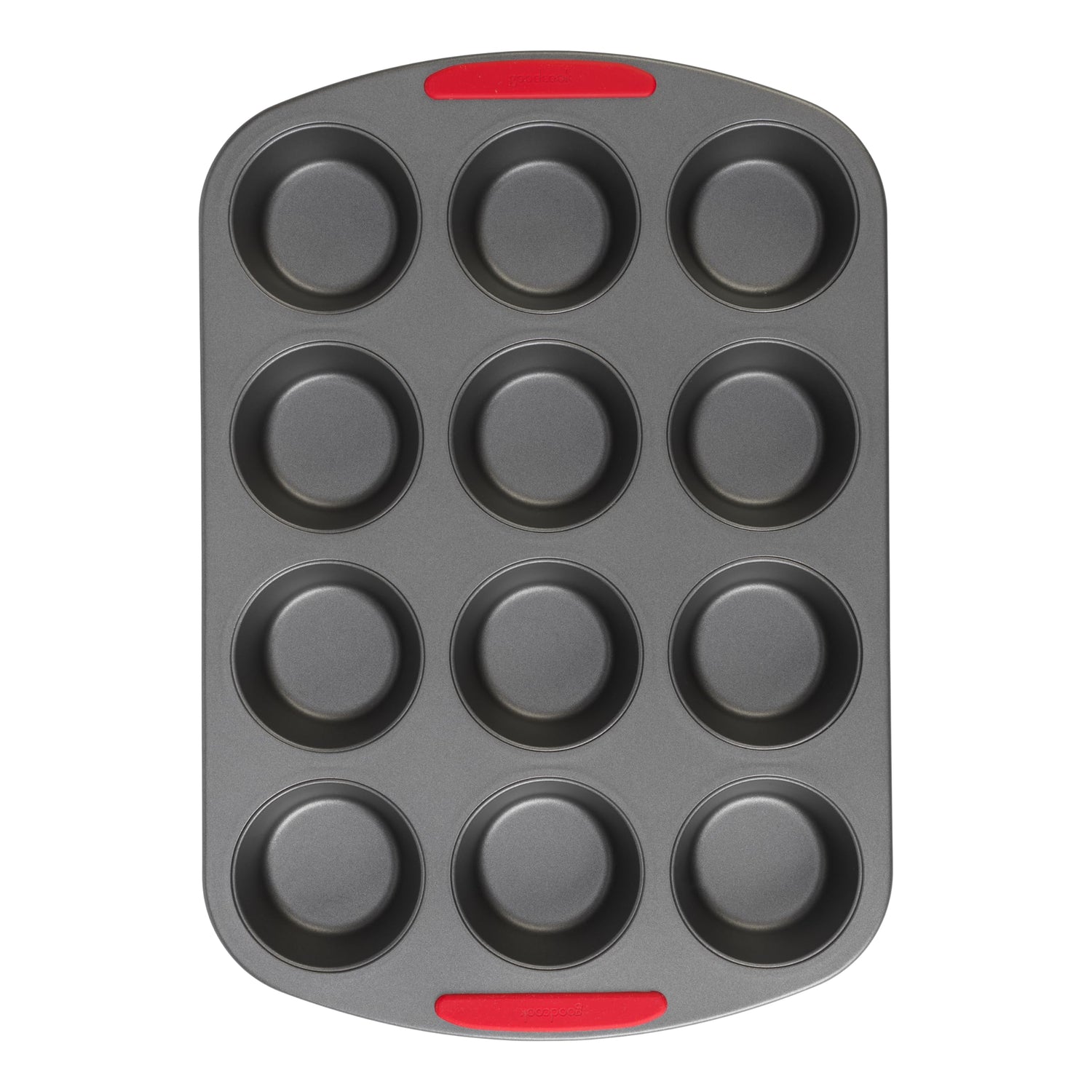 GoodCook MegaGrip 12-Cup Nonstick Steel Cupcake and Muffin Pan with Silicone Grip Handles, Gray