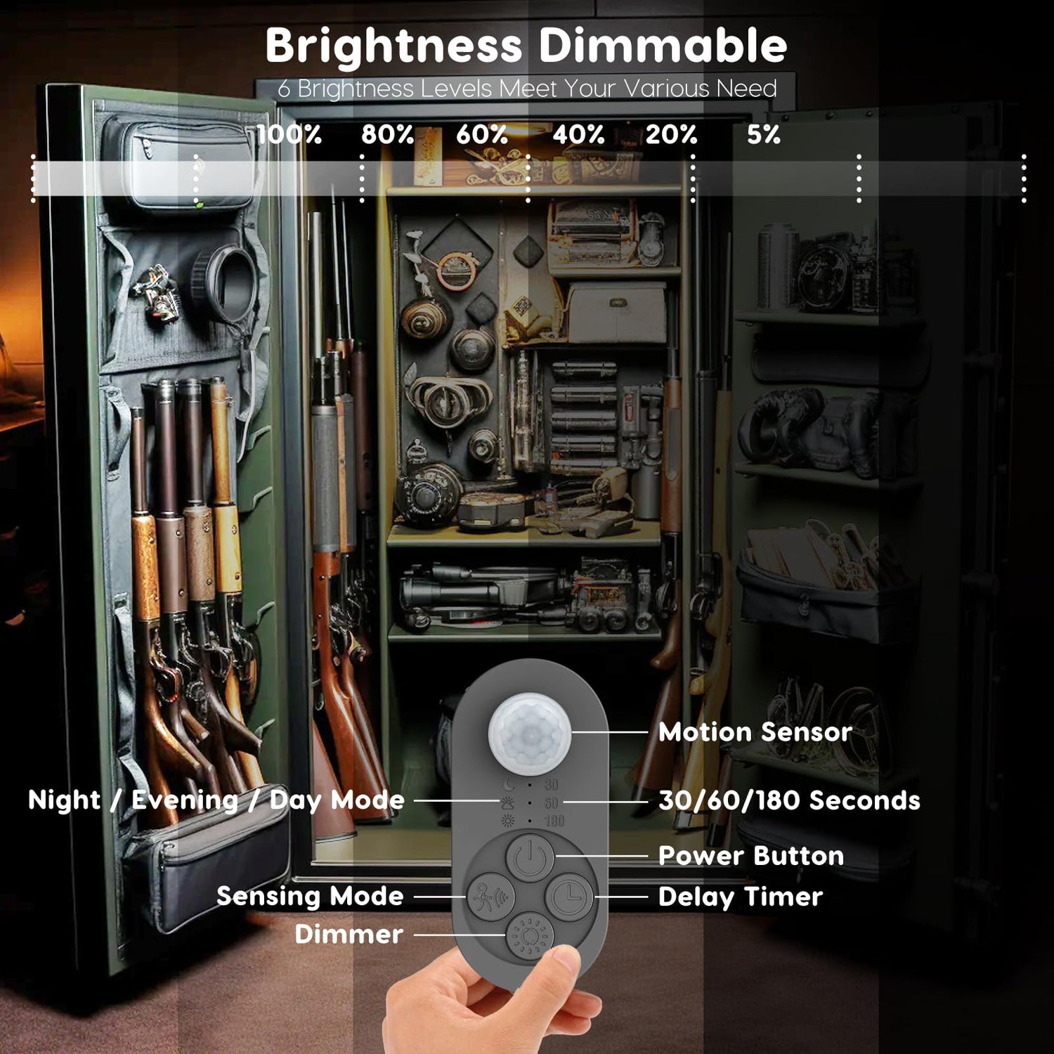 GOOMEEYA Motion Sensor Gun Safe Light with Self-Adhesive Tape with Hooks for Gun Safe with Carpet Interior