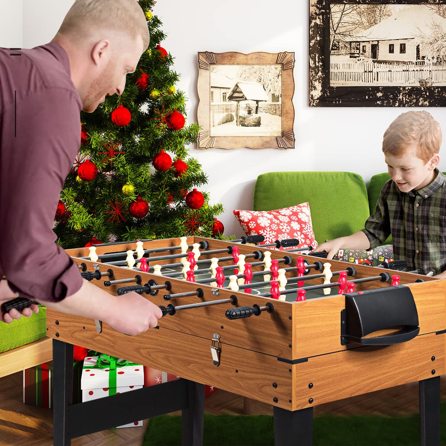 - ⚽【Excellent Durability & Stability】 Thanks to the reinforced structure and side locks, this game table keeps stable at a specific place for worry-free use. The game table also features iron rods and non-slip rubber handles for long-lasting use even in fierce competition, which help you complete the game well. Besides, adjustable foot pads further enhance overall stability.