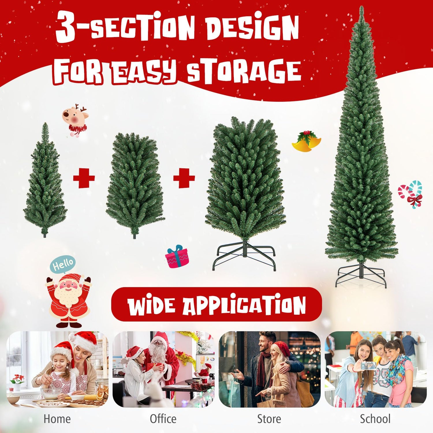 Goplus 8ft Pre-Lit Slim Pencil Christmas Tree, Artificial Skinny Xmas Tree with Quick Shape Technology, 671 Lush Branch Tips, 250 Warm White LED Lights, Slender Holiday Tree for Home Office Decoration