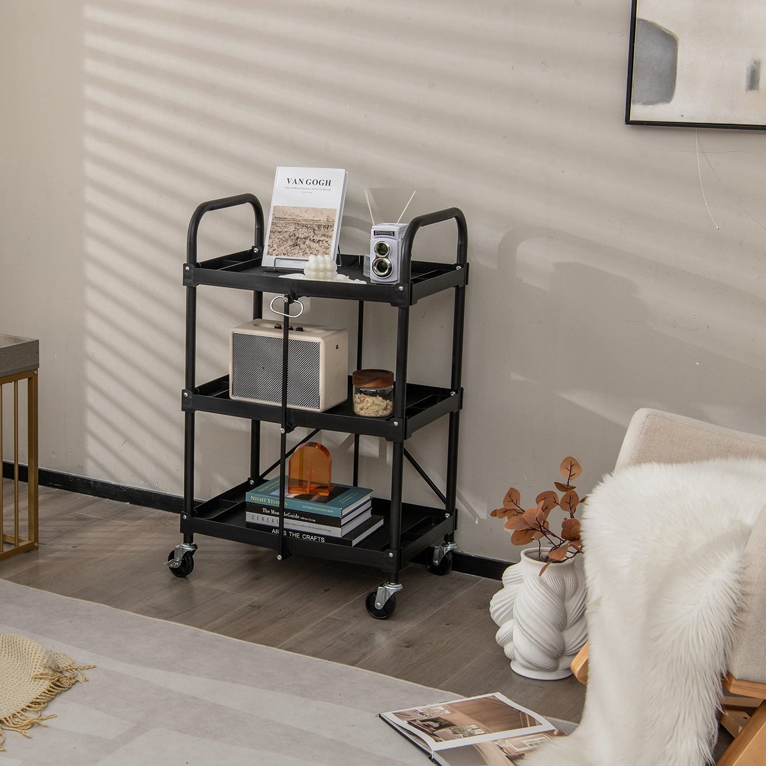 - 【3-Tier Design with Storage Compartments】This foldable utility cart with 3 large shelves (24” x 17.5”) offers ample space for different items. Furthermore, each tier is designed with 4 small open compartments, which can well organize tiny loose items. (Each tier is 12.5 inches apart)