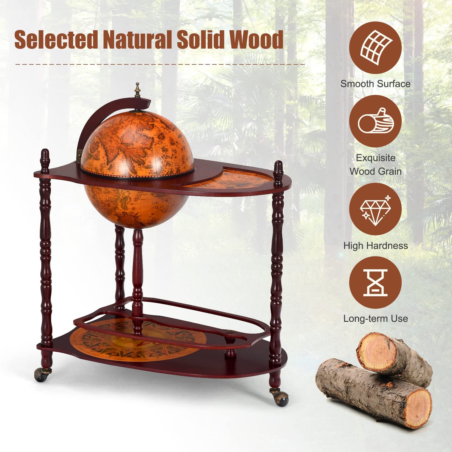 - 🍷【Sturdy Wood Construction】Delicately made of high quality natural eucalyptus wood, the globe wine cabinet is characterized by great sturdiness and high strength. More, well painted surface shows perfect performance in lasting durability. Solid support bars provide ultra reliable support for globe wine bar.