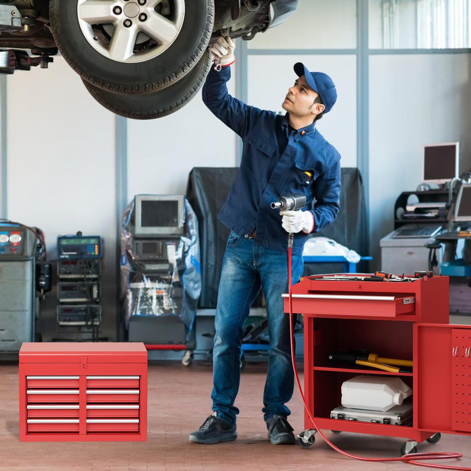 Goplus Tool Chest, 5 Drawers Rolling Tool Cabinet with Detachable Top Toolbox, Universal Lockable Wheels, Lock Bar, Protective Liner & Tool Rack, Metal Tool Storage Cart, Tool Box for Garage Workshop