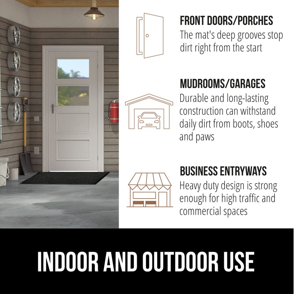 - BUILT TOUGH FOR HIGH TRAFFIC: the Gorilla Grip Traffic Guard doormat is ultra strong and built tough to withstand high foot traffic; constructed with a high quality textured rubber backing and raised fabric topside to help scrape off dirt and debris; thick and plush topside is gentle on bare feet, but durable for boots