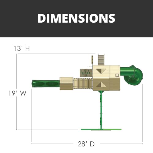 Details: Is your backyard missing something? Why not get the Treasure Trove I Treehouse Wood Swing Set by Gorilla Playsets? This set includes the 7-Foot Turbo Tube Slide and an Alpine Wave Slide. So whether your kids are playing on the swings or running across the Clatter Bridge, they are sure to be having a blast This premium cedar wood swing set is pre-cut, pre-sanded, pre-stained, and ready to assemble in your backyard. The wood roofs protect the play decks from the elements and include an Upper-Level Treehouse with working shutters. Gorilla Playsets' amber stained cedar naturally resists rot, decay, and insect damage.