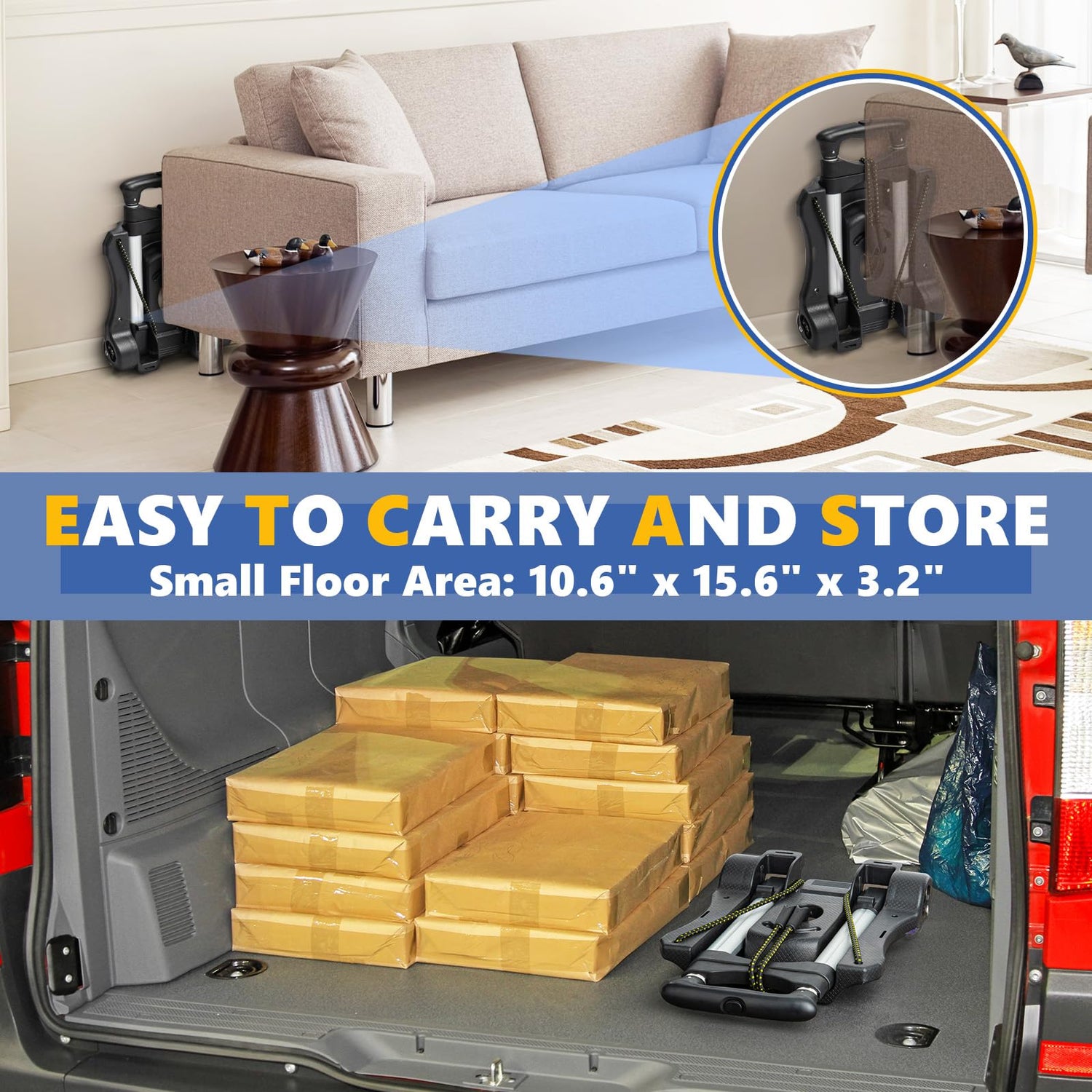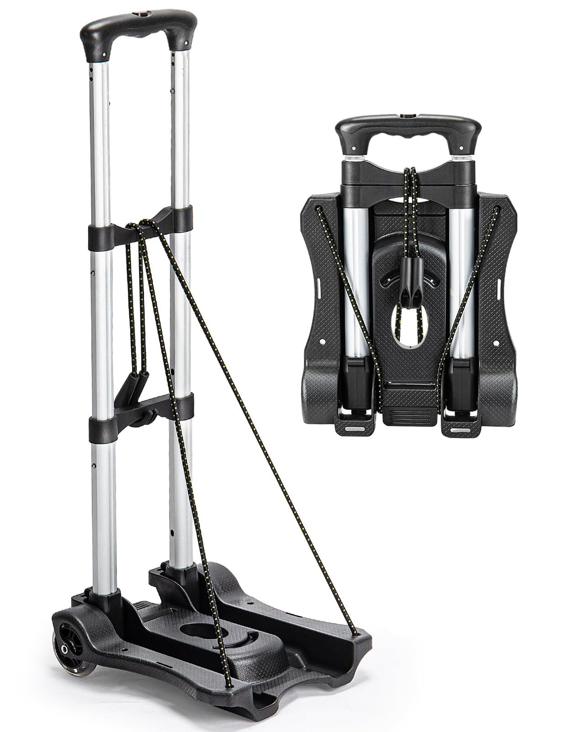 - 【Wide Application】- This small dolly with wheels will make your life easier. It's lightweight, compact, and easy to carry in your car or truck. You’ll always have the hand cart with you in your car to move anything heavy. The luggage cart with wheels foldable is ideal for airport travel and moving purposes, and you’ll be super happy with it.