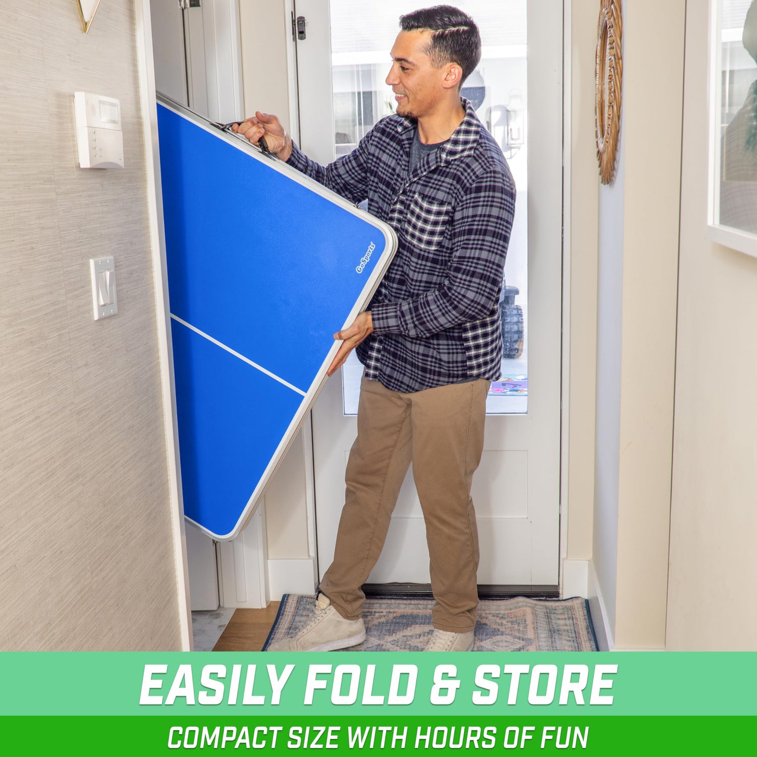 GoSports 6 x 3 ft Mid-Size Table Tennis Table Set with Adjustable Height - Blue
