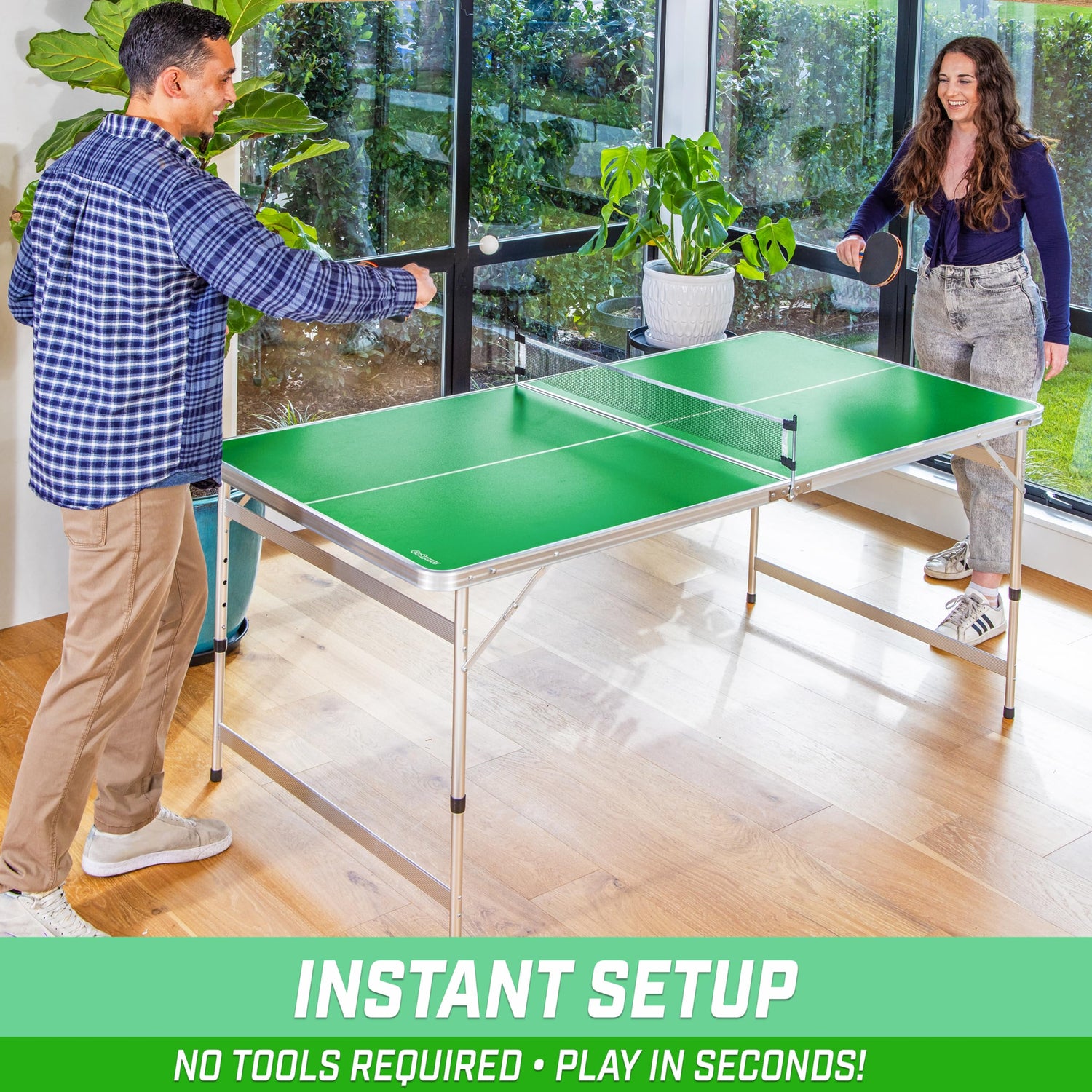 GoSports 6 x 3 ft Mid-Size Table Tennis Table Set with Adjustable Height - Green