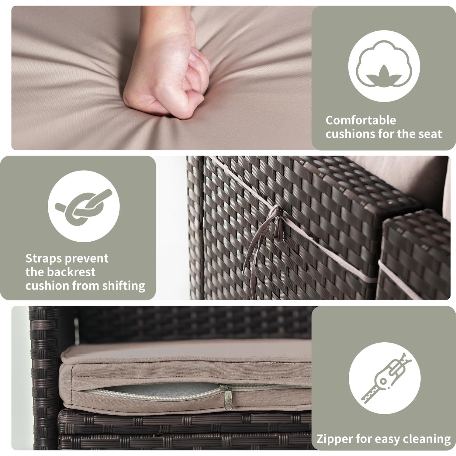 - Update Design- More product details give you a better experience. Free combination: Each sofa is separate and you can place them according to your preferences. Whether it's partying, having lunch, reading a book, or catching a quick nap, this sofa setional wicker, making this conversation set stand up to heat and weather better than similar rattan wicker furniture. Strong steel frame supports sofas stability and balance. Removable glass & cushion covers are easy to clean.