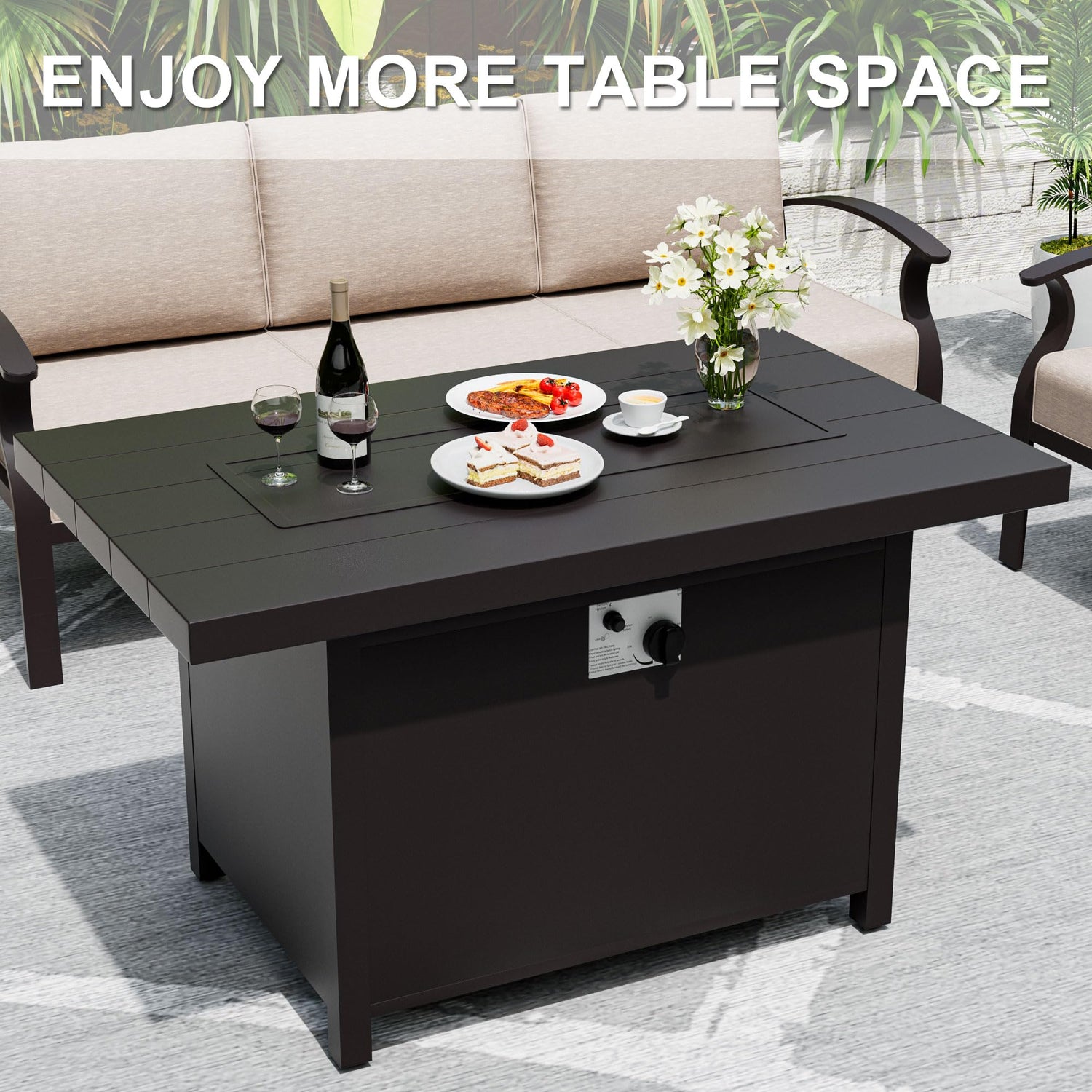 - Safe and Reliable Fireplace - The fire pit table is ETL certified, product quality and safety are guaranteed. Using propane fuel, it burns steadily and is green, so you will no longer be bothered by ashes and smoke. This safe and beautifully designed fireplace outputs 50,000 BTUs of heat, providing plenty of warmth and a romantic campfire atmosphere for your family and friends. Each gas fire pit table is factory tested so you can easily adjust the flame.