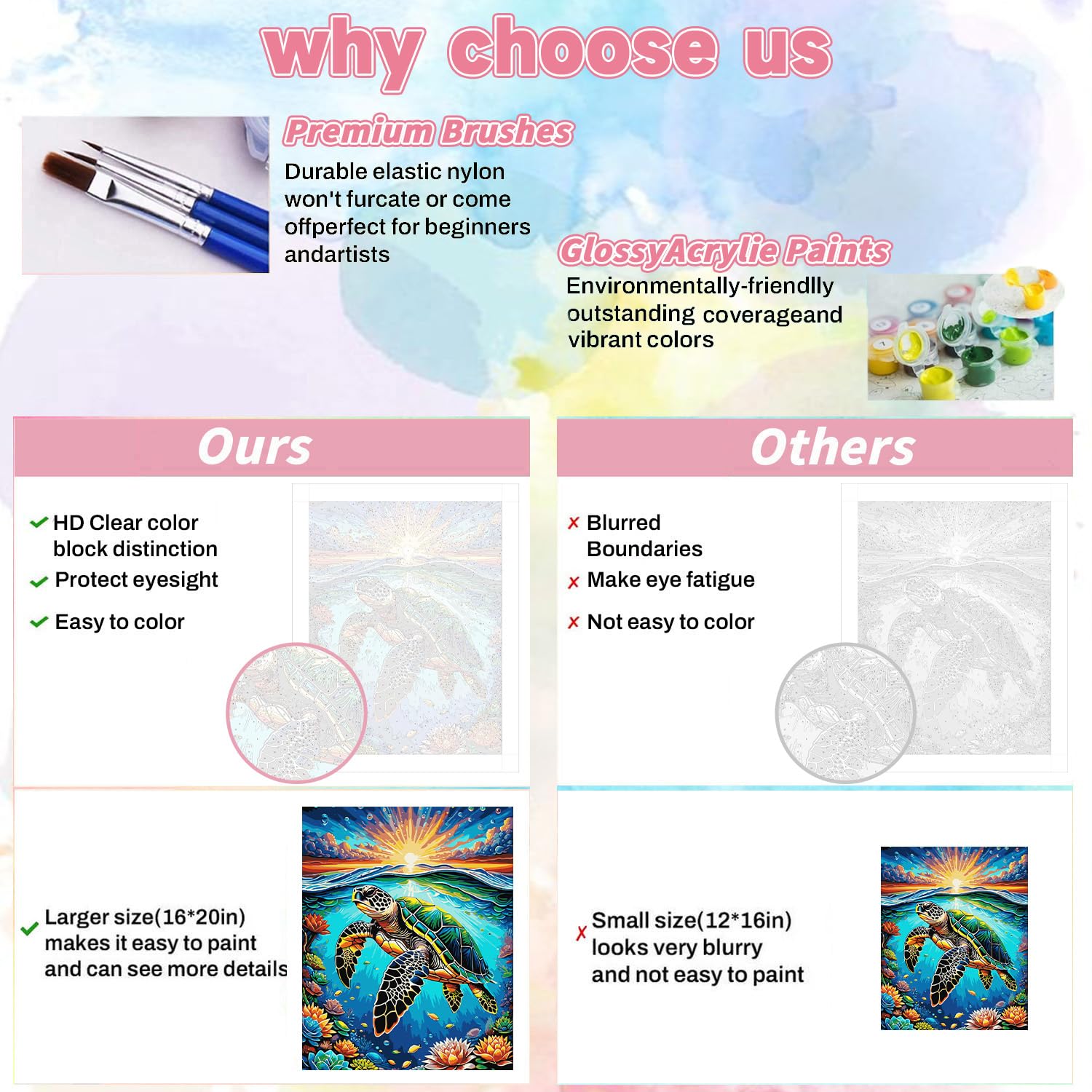 GOUGOUFAFA Sea Turtles Paint by Numbers Kit for Adults - 16 x 20 Inch