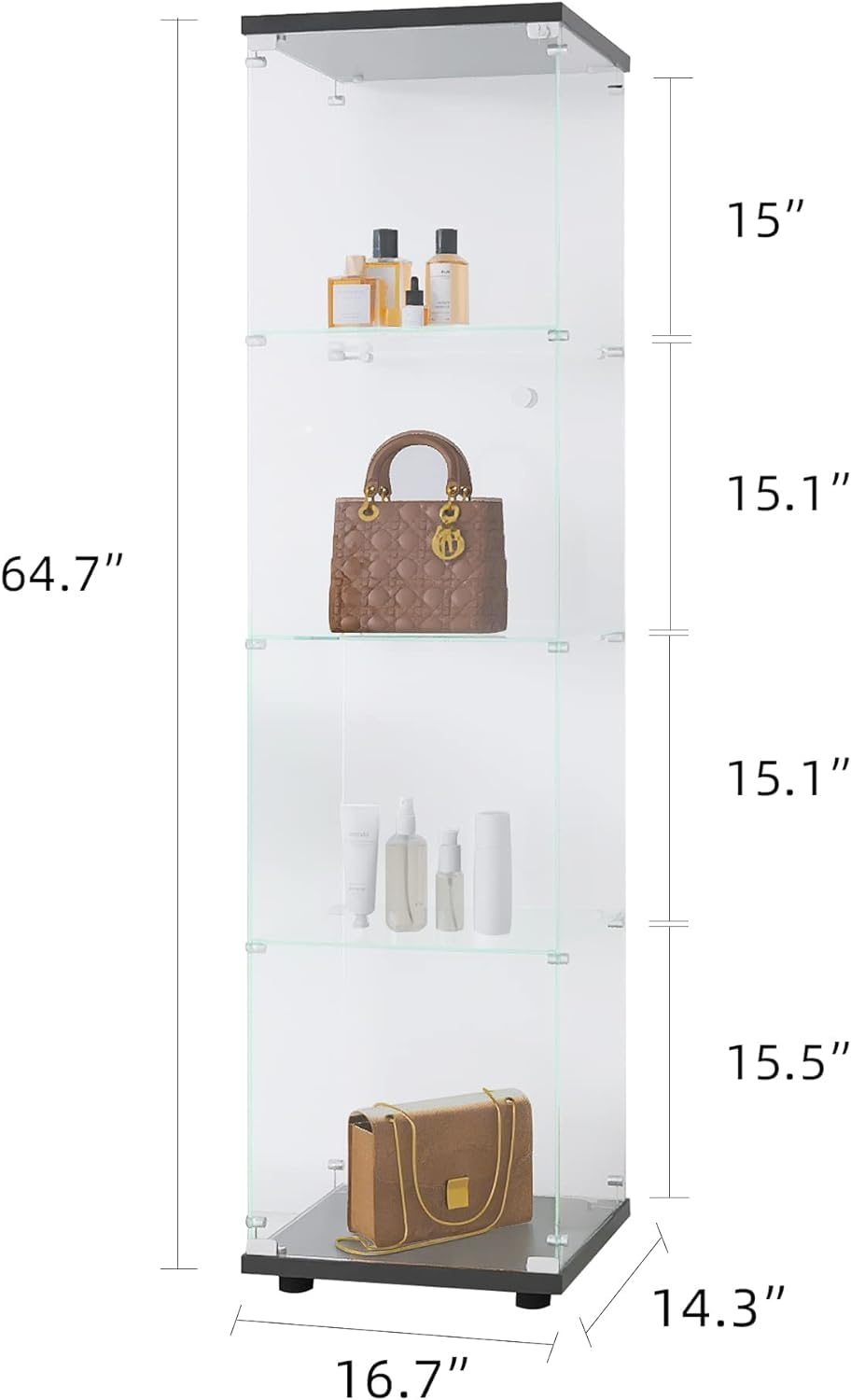 Details: Goujxcy curio glass display cabinet is made of tempered glass and features 4-tier shelves, providing plenty of storage space and a safe area to hold all your special collections, leaving your room looking clean and tidy. It is a functional and decorative storage case for your home and office.
