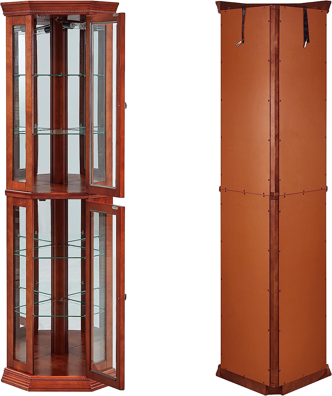 - Curio Display Cabinet with Mirrored Panel: The mirrored back panel runs the entire height of the curio cabinet and ensures your family heirlooms will be in the best view at all times. Having the mirrored back panel ensures you'll get a pleasing view of your collectable from anywhere in the room