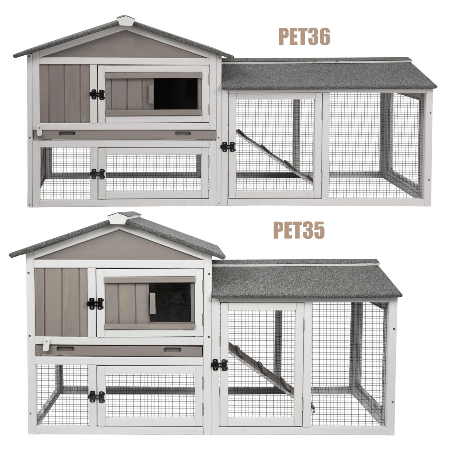 - 【Thoughtful Design】The bunny cage comes with a pull-out tray for easy cleaning. The wooden ramp allows your cuddly companion to move freely between the activity area and resting area. The wooden ridge above the ramp prevent your furry friends from slipping. Close the door connecting the resting area and activity area, your pet pals can enjoy the warm space while sleeping at night.
