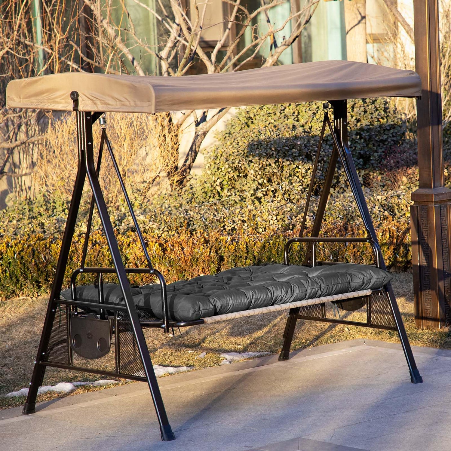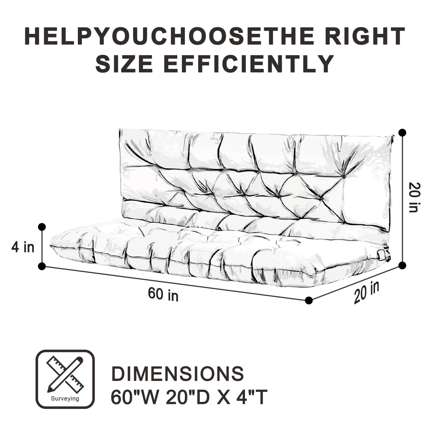 - 【Porch Swing Cushions】Swing cushions 3 seater replacement with backrest is made of high quality splash-proof polyester fabric. Durable, Non-Fading,Skin-Friendly,Sun-Proof .Tip: Since the product is vacuum compressed, the rebound takes about 24 hours and longer,ensuring that the replacement Outdoor swing cushions 3 seats waterproof of the outdoors can be used for a long time.