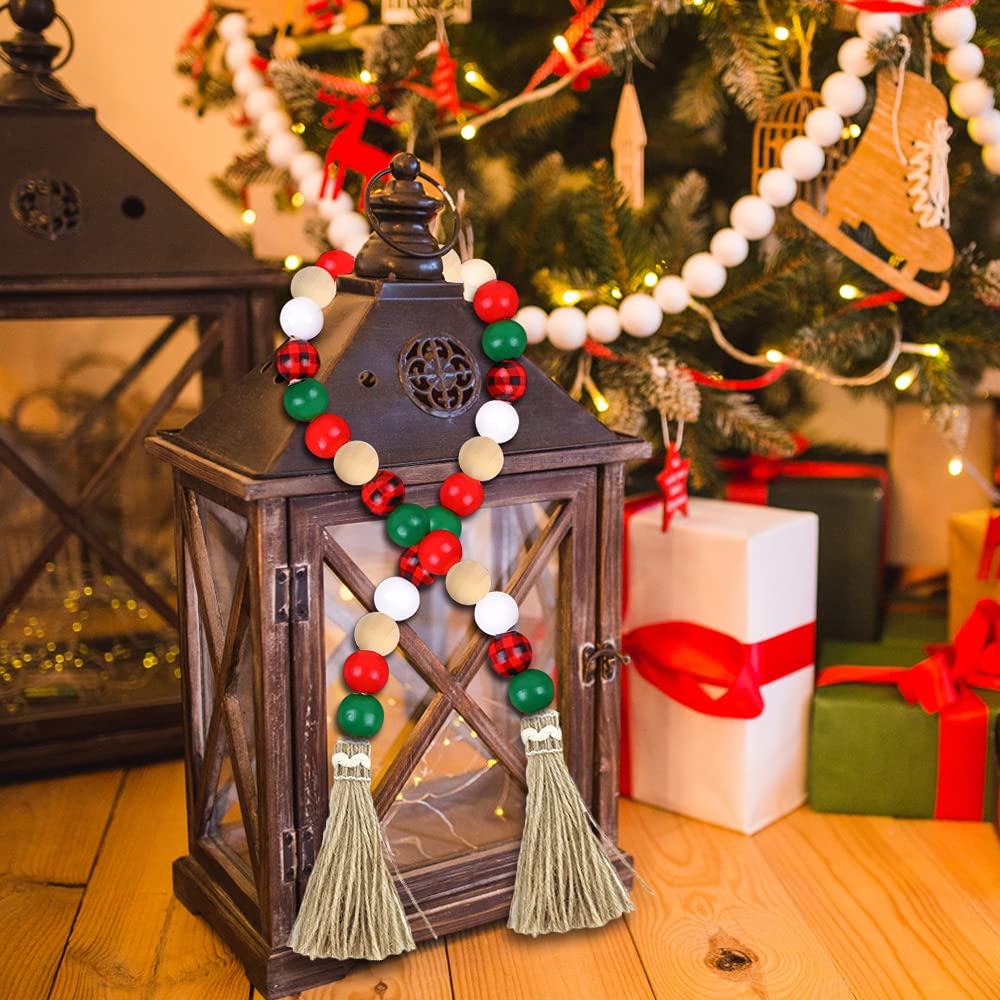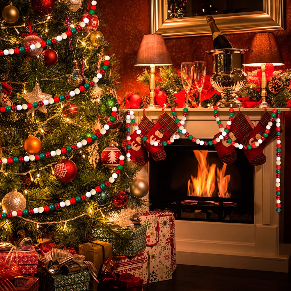- Christmas Design: Christmas Round Wood Beads are available in 5 color styles, such as red, white, primary color, green and plaid. Plaid and solid colored beads could be matched freely, make your decoration more special.