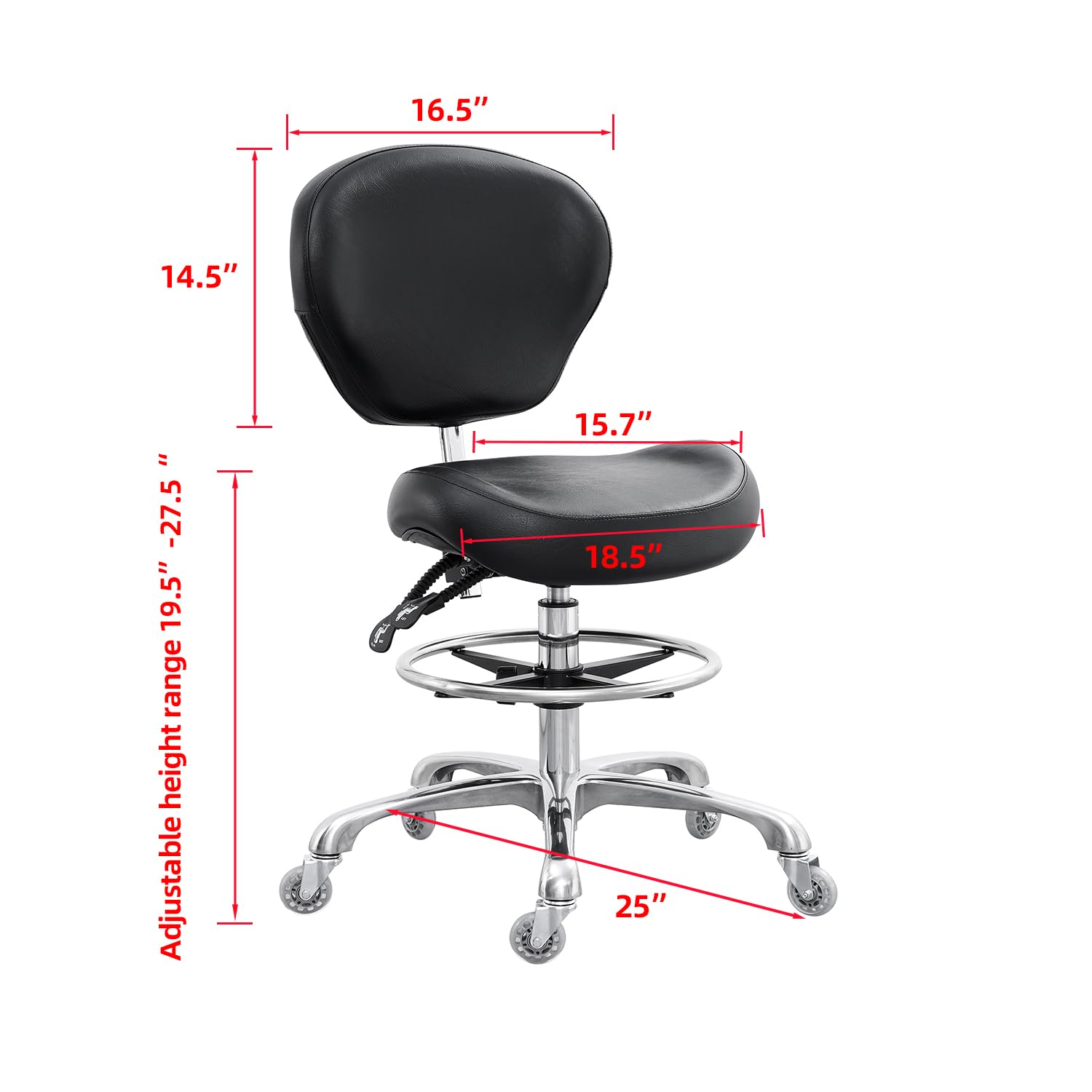 - Versatile Ergonomic Features: Our ergonomic drafting stool with back support is equipped with intuitive recline and height adjustment mechanisms, coupled with a 360-degree swivel seat and a seat height range from 19.5 to 27.5 inches, offering you the freedom to tailor the chair to your perfect ergonomic fit.