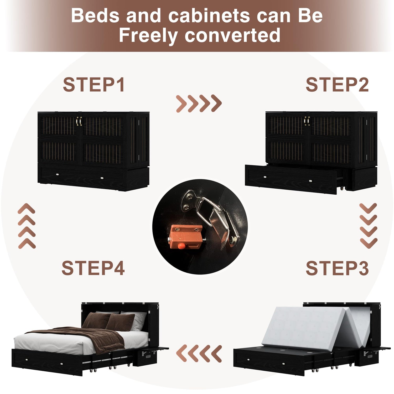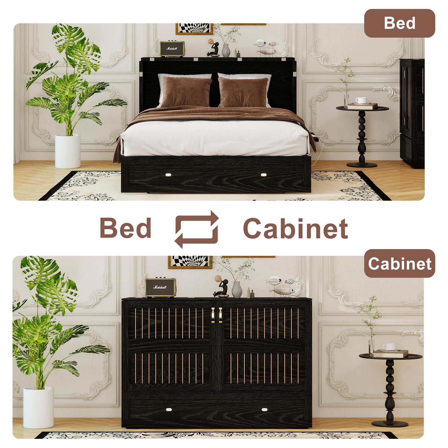- 【Smart Design and Functionality】 The murphy bed in a cabinet features a robust, easy-to-use mechanism that allows quick conversion from storage to sleep mode. As a cabinet bed, it offers drawer for organization, making it ideal for multi-purpose rooms. Enjoy the convenience of a queen size murphy bed that folds away neatly, preserving your living area's aesthetic.