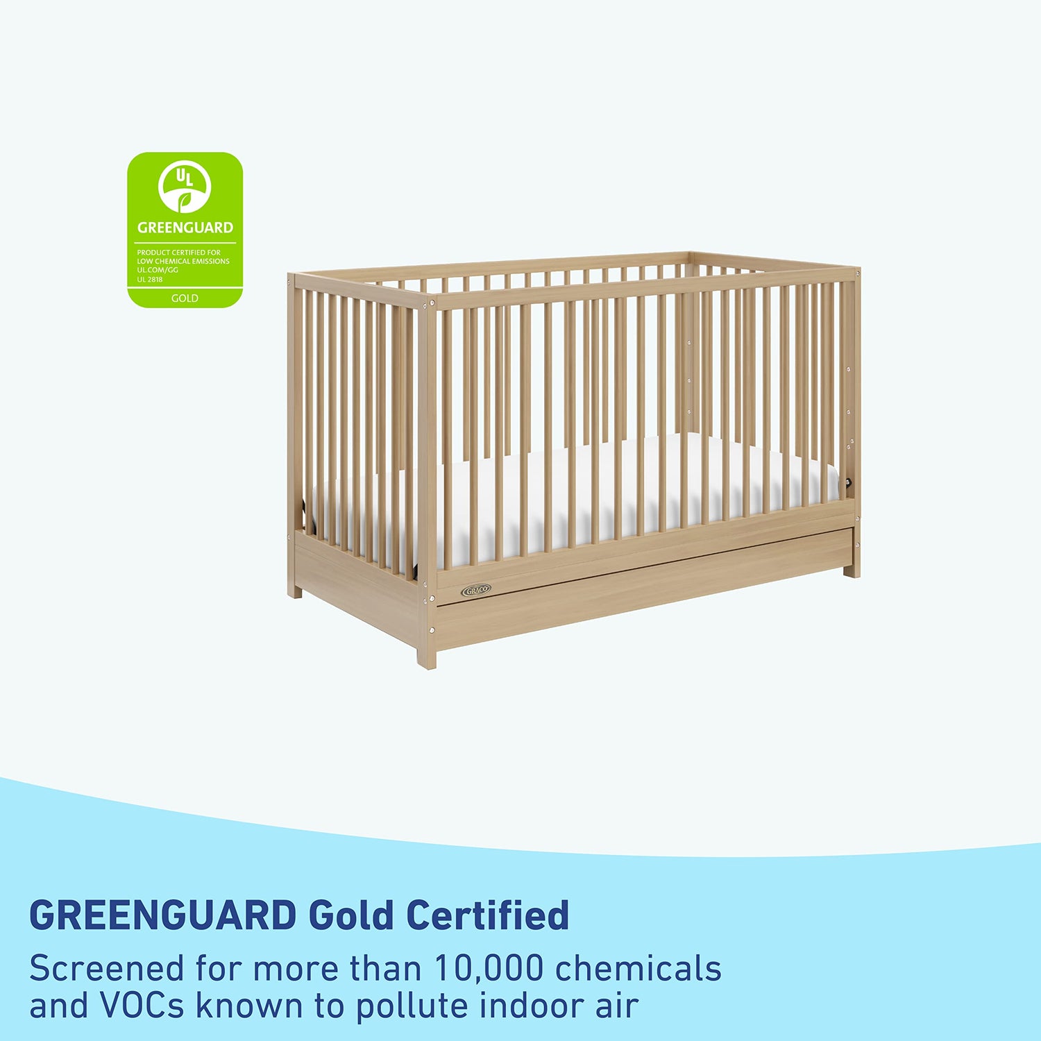 - GREENGUARD GOLD CERTIFIED, JPMA CERTIFIED: GREENGUARD Gold Certified products are screened for more than 10,000 chemicals and VOCs known to pollute indoor air; Expert tested to meet or exceed all applicable category voluntary and mandatory safety standards