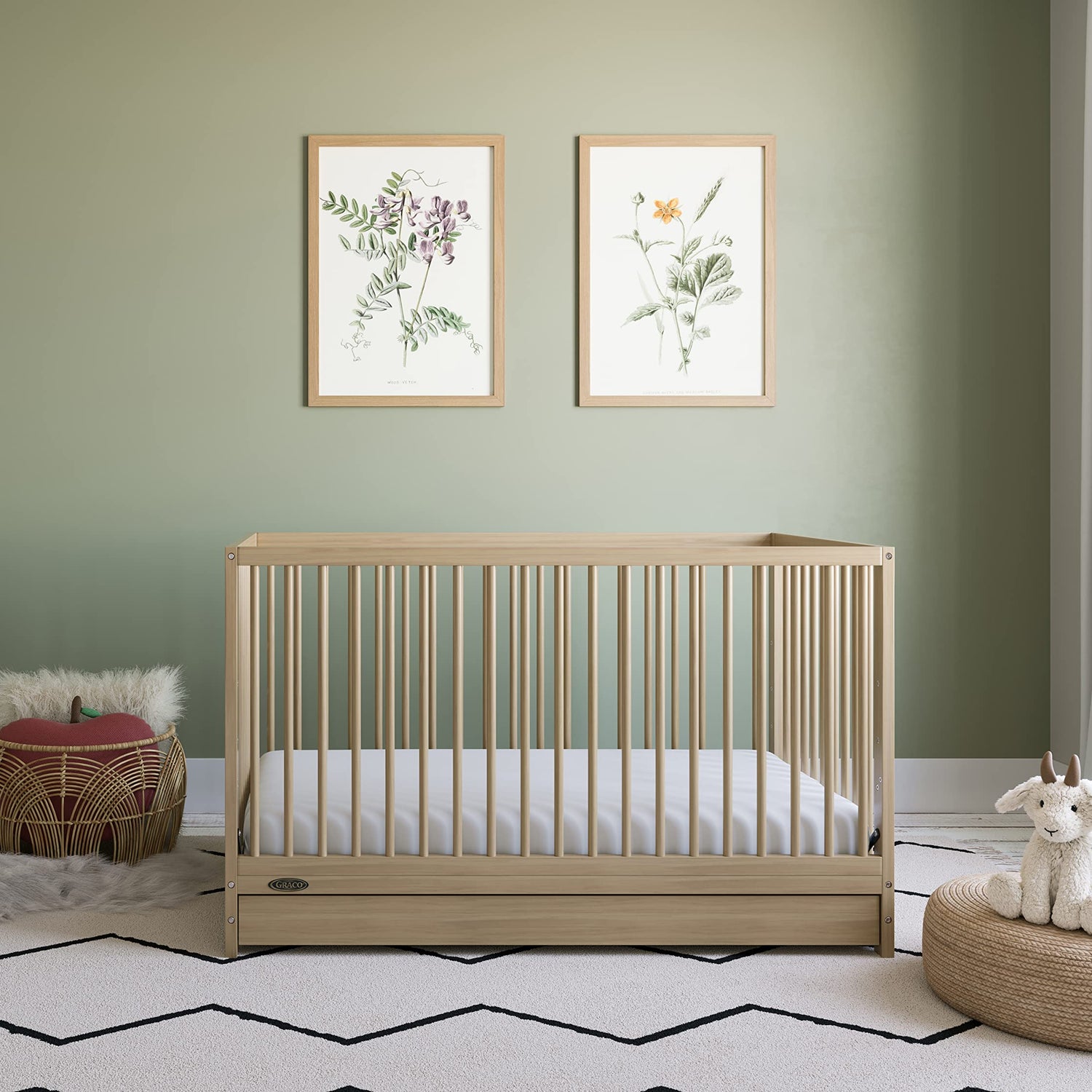 Details: Bring your dream nursery to life with the Graco Teddi 5-in-1 Convertible Crib with Drawer. With its clean, modern, and timeless design, the Teddi is the perfect addition to any nursery, and easy to match with any style. The Teddi is crafted from pine wood, poplar dowels, wood composites and includes Euro drawer glides, and its applied finish has been tested to meet or exceed the applicable ASTM and CPSIA safety standards. The Teddi is GREENGUARD Gold Certified — Certified products are screened for more than 10,000 chemicals and VOCs known to pollute indoor air. Also, the Teddi is JPMA Certified — meaning it’s been expert tested by third-party, accredited laboratories to meet or exceed all of the applicable category voluntary and mandatory safety standards. Designed to adapt to your growing baby, the Teddi is equipped with an adjustable mattress support base with 4 different height options so the mattress support base’s position can be lowered as your child grows (please note, this crib may only be used until your child can easily climb out or is taller than 35 inches (89 cm). To support your child’s journey from babyhood to toddlerhood and beyond, the Teddi is able to be converted from a crib to a toddler bed (compatible with 1 or 2 toddler guardrails, each sold separately), daybed, and full-size bed with headboard and optional footboard (compatible full-size conversion kit sold separately). The Graco Teddi 5-in-1 Convertible Crib with Drawer is designed to accommodate any standard full-size crib & toddler mattress (mattress sold separately – we recommend any Graco crib mattress). Graco is the proud recipient of the Parent Tested Parent Approved (PTPA) Seal of Approval for nursery and children’s bedroom furniture, and the 2022 Women's Choice Award for 9 out of 10 Recommended Baby & Kids Furniture. Backed by a 1-year limited manufacturer’s warranty. Assembly required. Mattress sold separately.
