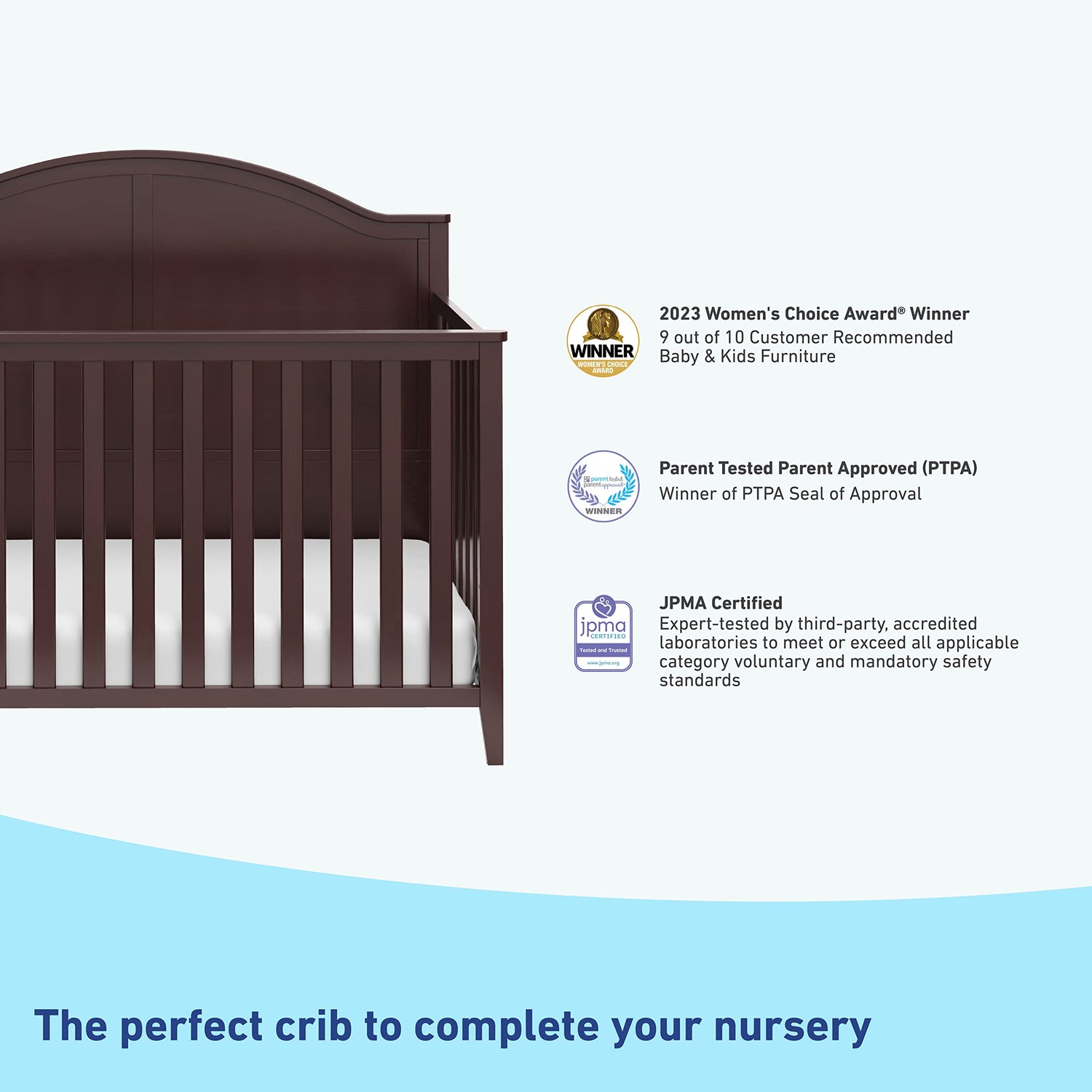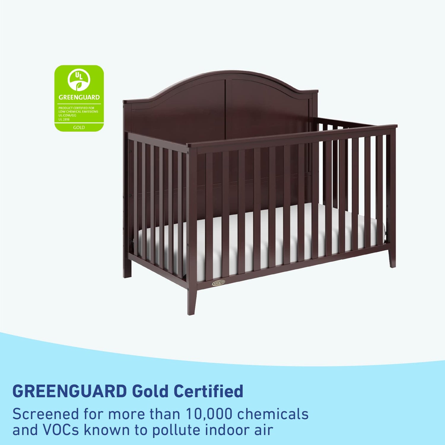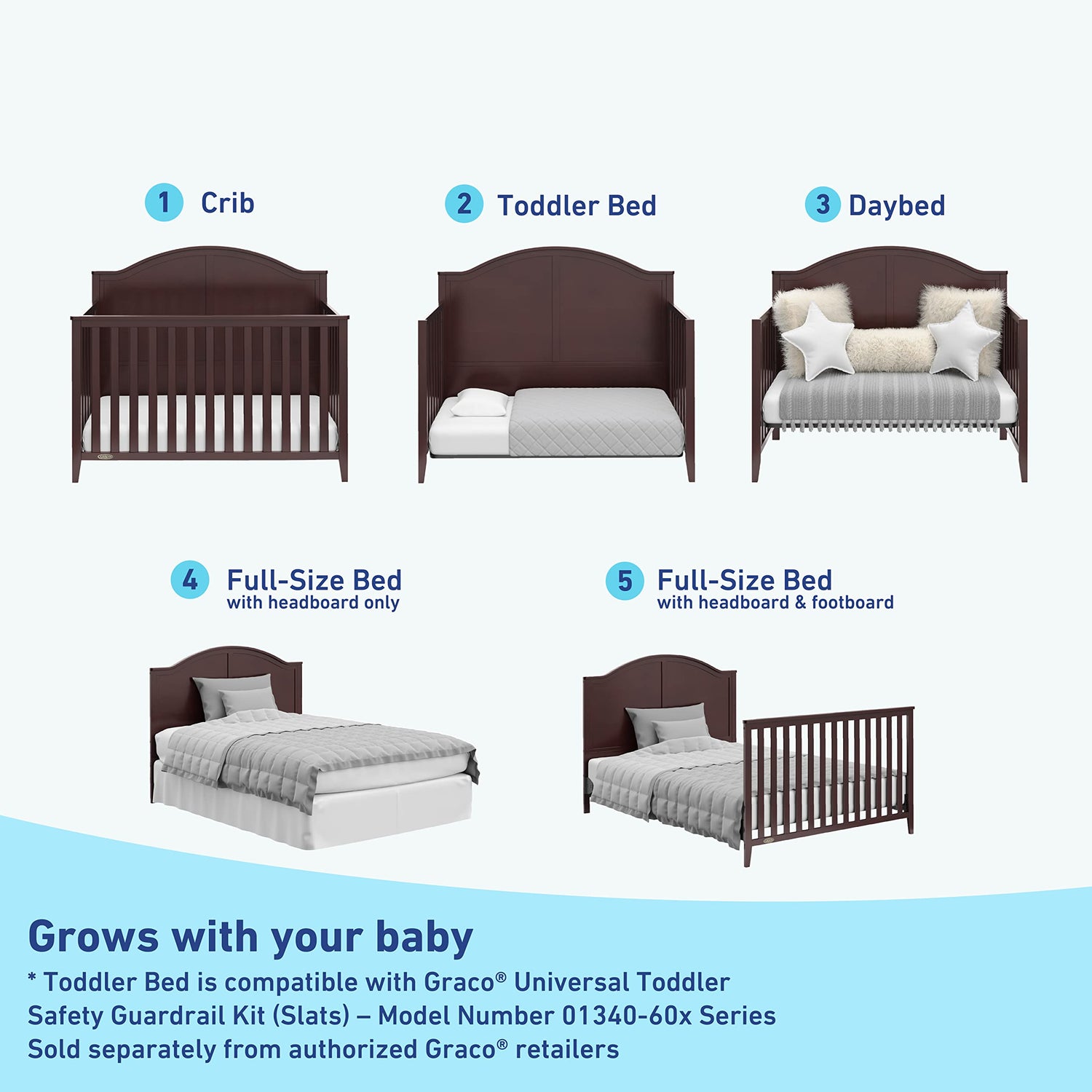 Graco Wilfred 5-in-1 Convertible Crib (Espresso) – GREENGUARD Gold Certified, Converts to Toddler Bed and Full-Size Bed, Fits Standard Full-Size Crib Mattress, Adjustable Mattress Support Base