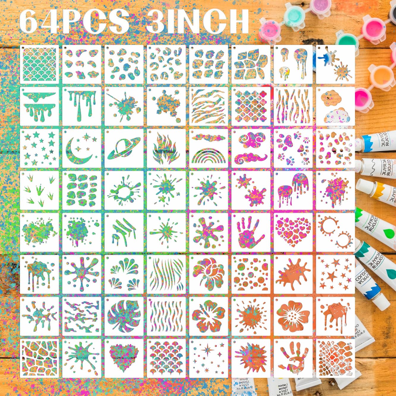 Graffiti Stencils for Crafts - Plastic Reusable Small Stencils for Wood, Rock Painting (64pcs/3inch)