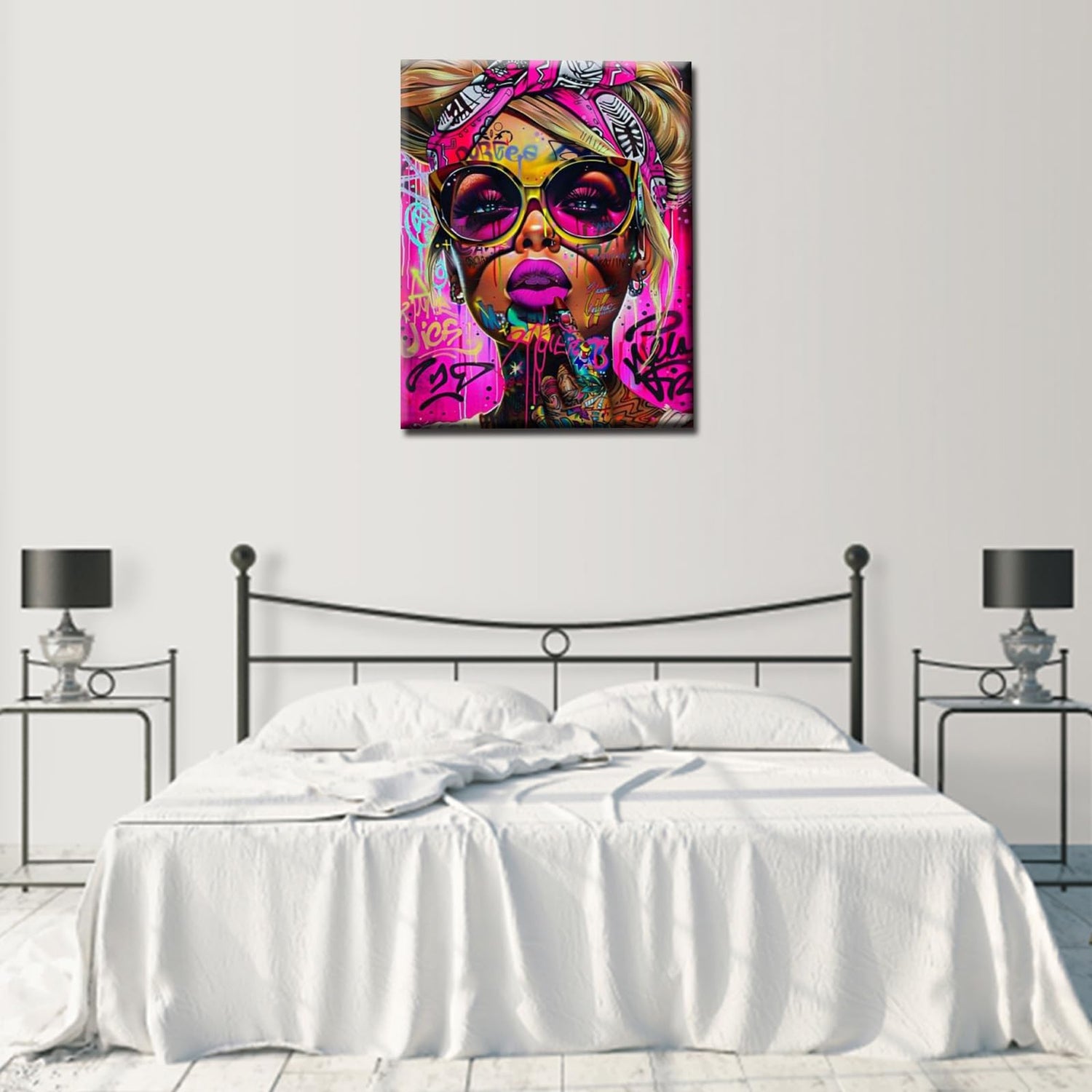 Graffitic Fashion Women Diamond Painting for Adult Sexy Candy Girl DIY 5D Full Drill Crystal Art 16x12 inch,Lady Wearing Sunglass HD Canvas Diamond Art Craft Home Decor Pop Art Gift(Frameless)