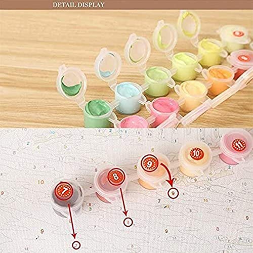 - 【SELF EXPLANATORY 】The DIY Oil Painting on Canvas has preprinted numbers that corresponds to the paint set. Each color paint is labelled with a number. Simply follow the numbers.Paint by number kit on canvas 16x20inch.