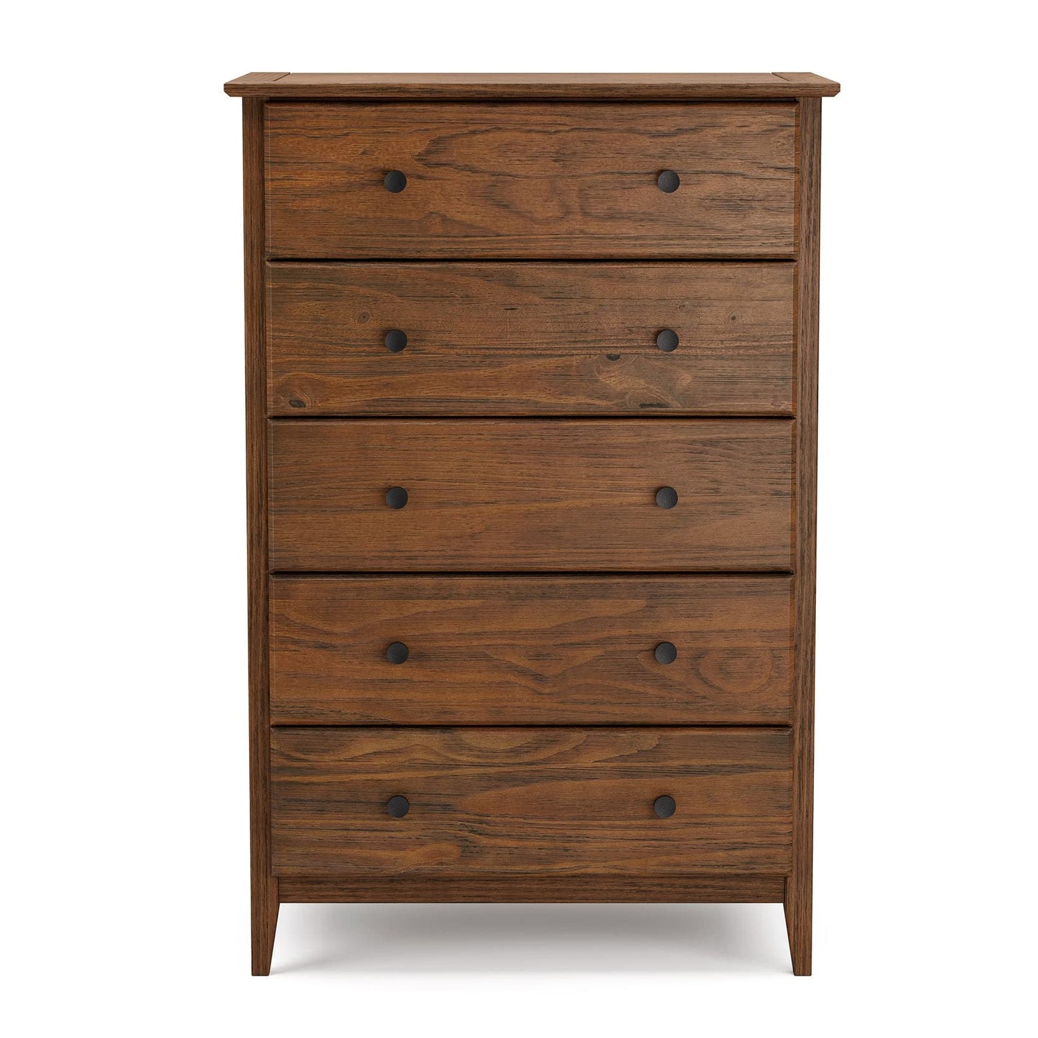 Grain Wood Furniture Greenport 5-Drawer Chest, Solid Wood with Brushed Walnut Finish