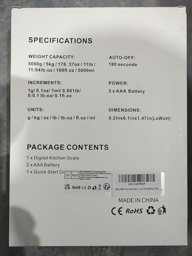 - 【Quality commitment】 Classic digital kitchen scale, simple and practical, powered by 2 x AAA batteries (included). We keep our quality promise to our customers. If there is any reason, please contact us. We offer a special 2 months money back and 12 months warranty on all our products. 100% satisfaction guarantee.