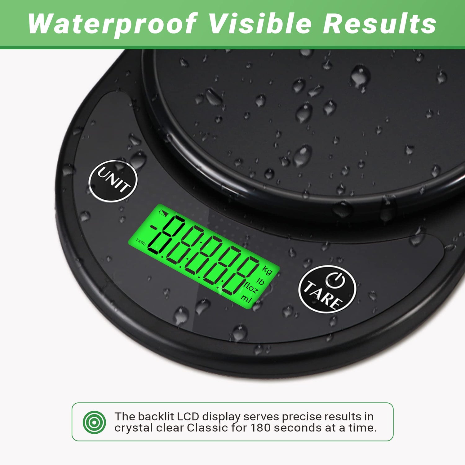 - 【Waterproof Design】 Durable ABS kitchen scale with tightly bonded edges and a waterproof strip on the battery compartment, waterproof to IPX 6. Enables you to easily measure liquids and wipe the scale clean.