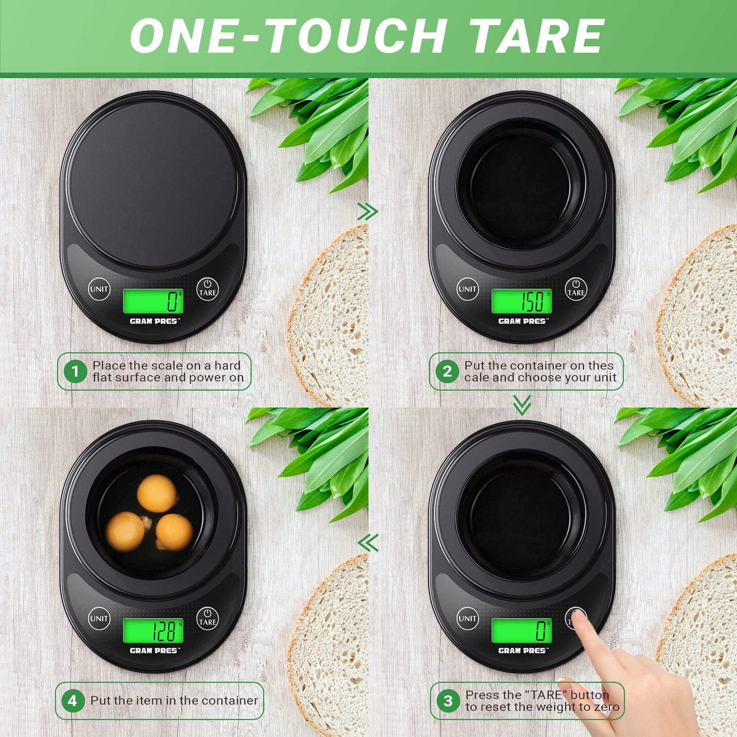 GRAM PRES Food Kitchen Scale Digital Weight Grams and Oz with IPX6 Waterproof,Professional Digital Kitchen Food Scale 11lb/0.01oz with LCD Display for Weight Loss Dieting Baking Cooking