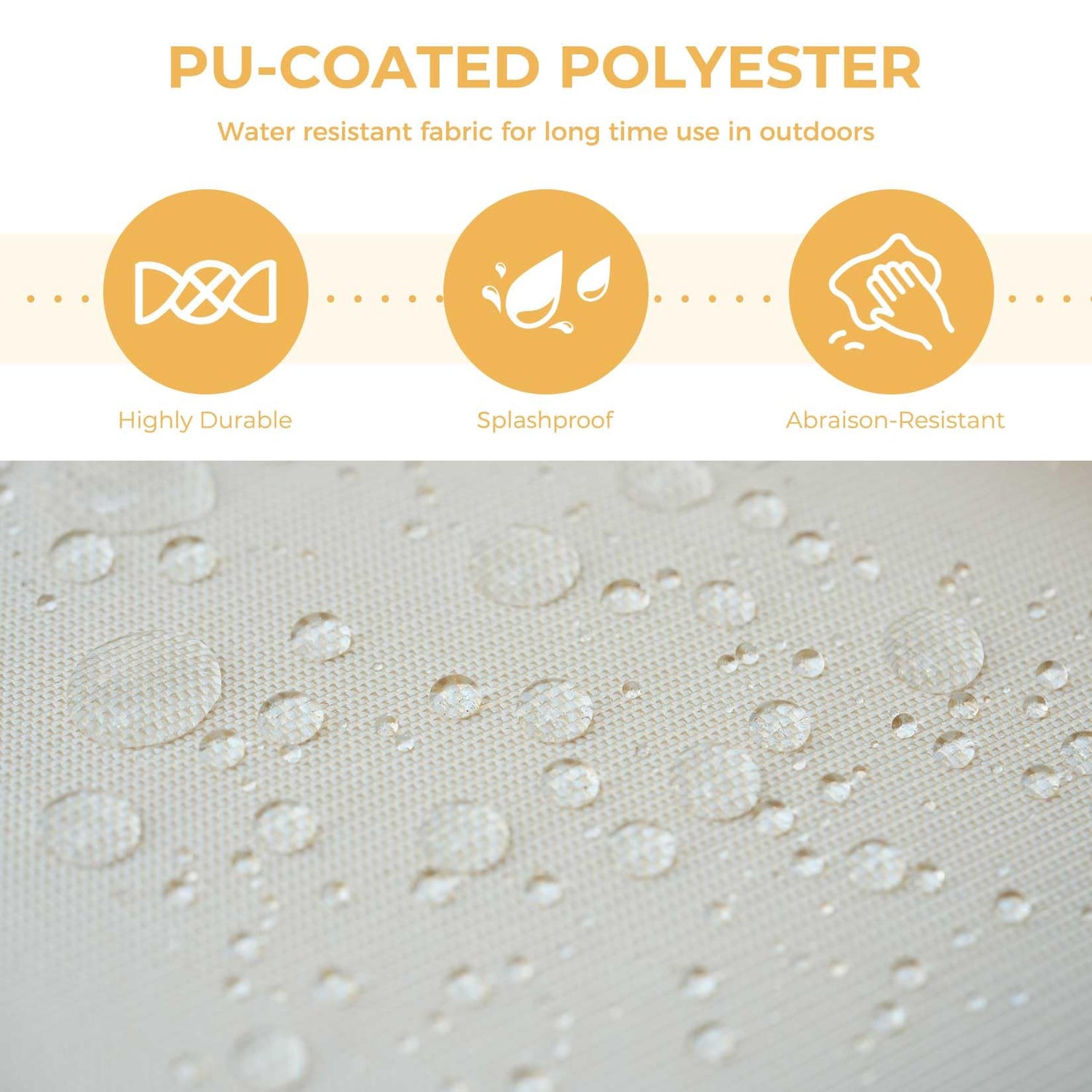 - WATER RESISTANT CUSHIONS: The outdoor-rated cushion covers are PU-coated polyester fabric that is UV-ray, stain, and moisture-resistant and is more substantial than standard polyester. The 4'' cushions of this 10 pieces outdoor conversation set, providing excellent support and reduces fatigue, allowing you to relax and immerse yourself in comfort for extended periods of time. In addition, the removable cushions with smooth zipper make cleaning a breeze