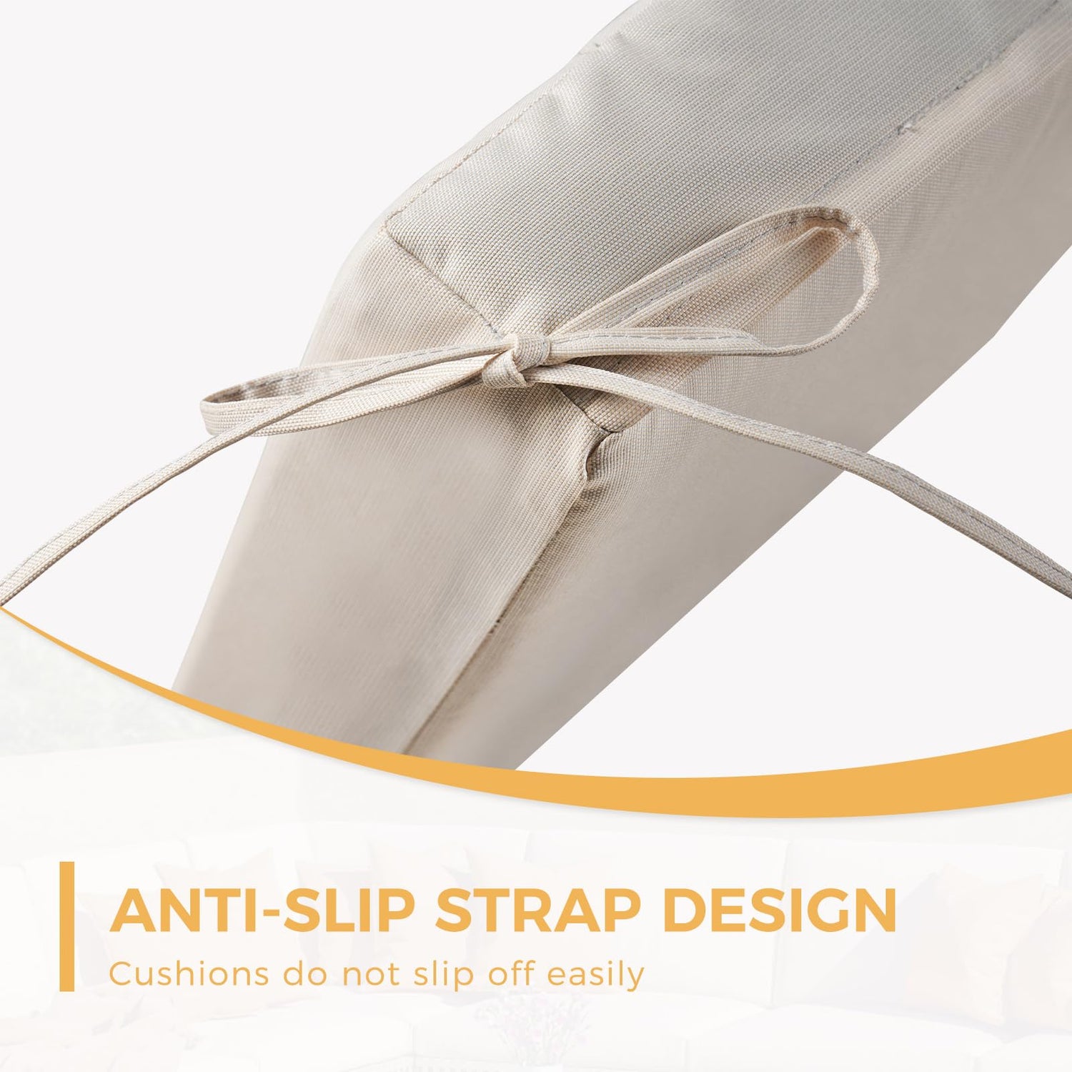 - WATER RESISTANT CUSHIONS: The outdoor-rated cushion covers are PU-coated polyester fabric that is UV-ray, stain, and moisture-resistant and is more substantial than standard polyester. The 4'' cushions of this 12 pieces outdoor conversation set, providing excellent support and reduces fatigue, allowing you to relax and immerse yourself in comfort for extended periods of time. In addition, the removable cushions with smooth zipper make cleaning a breeze