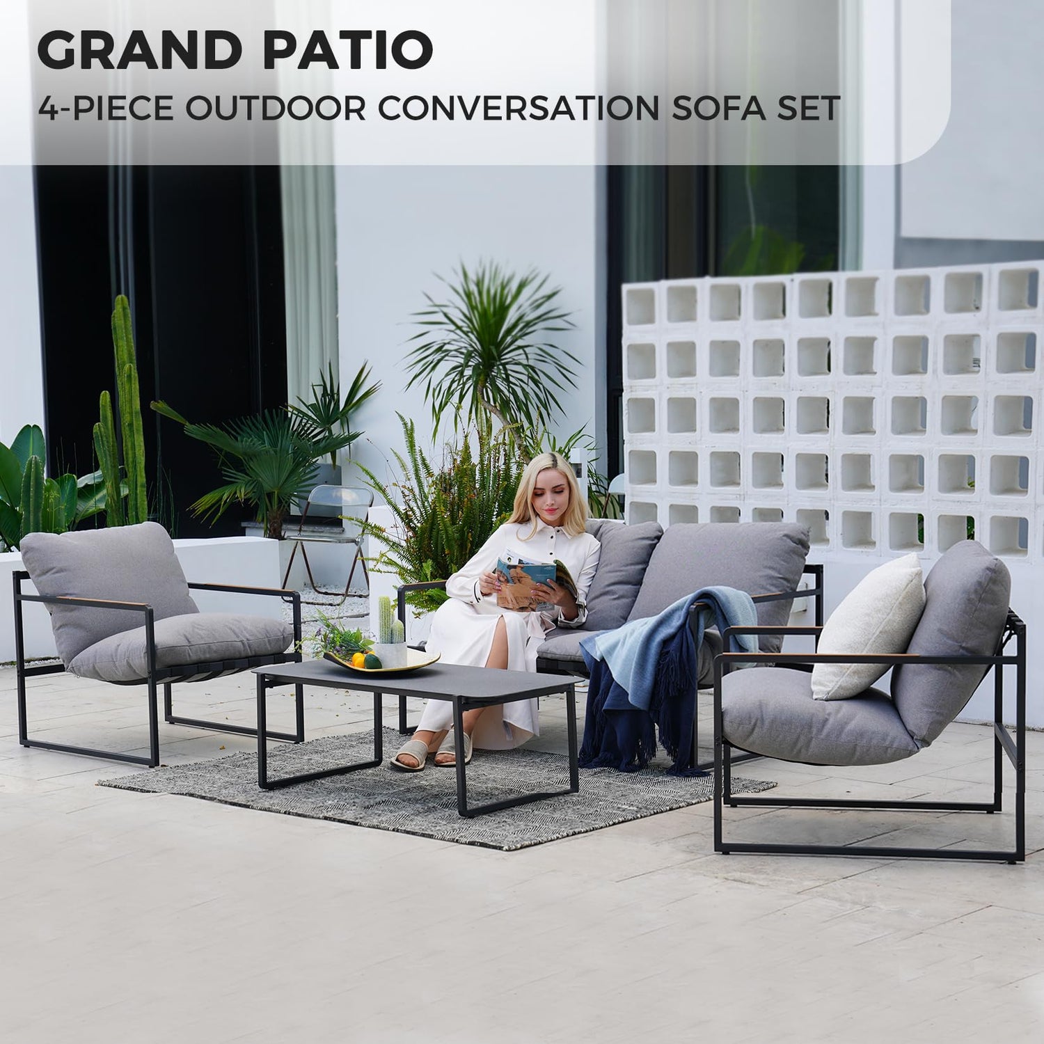 Grand patio 4-Piece Outdoor Furniture Set, Patio Outdoor Sofa with Cushion, Modern Metal Couch with Coffee Table, Outdoor Conversation Set for Porch Deck Balcony Backyard Living Room