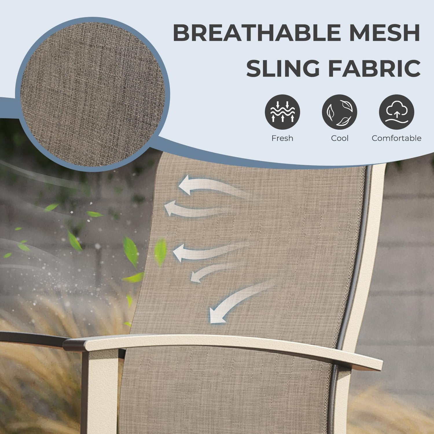 The swivel bar stools are designed with your comfort in mind. Their 360-degree rotation allows you to enjoy the view from any angle as you sit back and unwind. Reinforced with double support rods, these stools are built to hold up to everyday use. Each stool is crafted from a thickened steel frame paired with high-density mesh sling fabric, ensuring durability and flexibility. With a tested weight capacity of 300 pounds, these stools are sturdier and more stable than standard bar chairs.