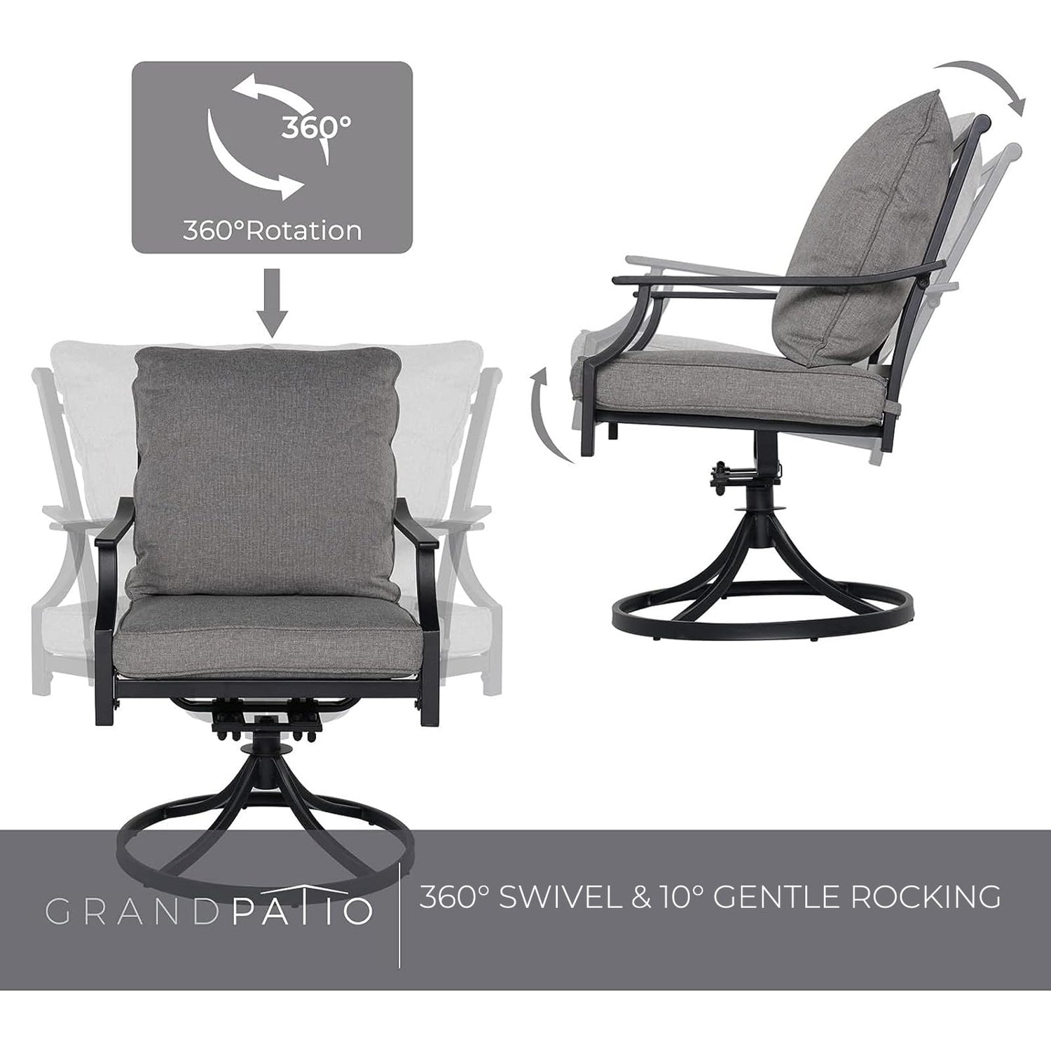 - SWIVEL & ROCKING:Our patio dining set includes smooth swivel rockers, the comfort of curved arms, and a high backrest, the 360-degree full rotation makes it easy to redirect your attention and get in and out while the 15-degree gentle rocking motion offers ideal relaxation