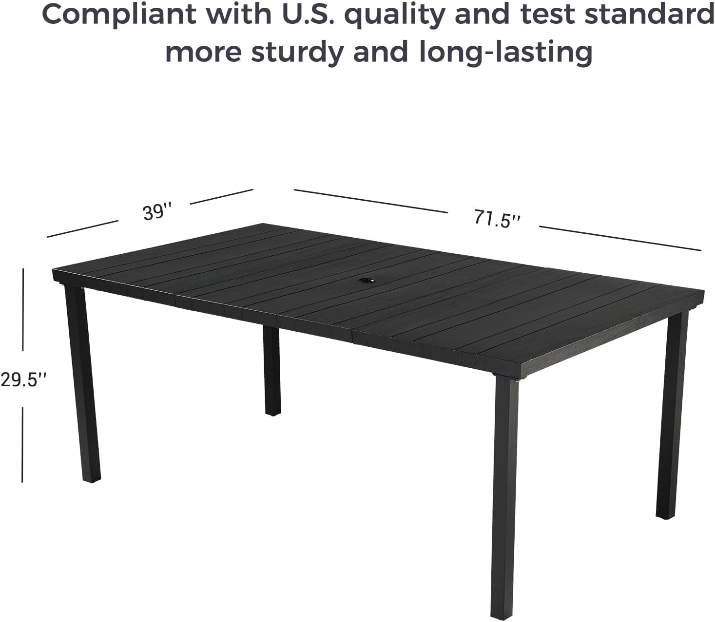 - MULTIPURPOSE DINING TABLE:The patio dining tabletop is hand brushed for the natural warmth of wood in an easy-care finish. The built-in umbrella hole on the tabletop fits standard outdoor umbrellas (within 1.57" diameter hole) on the market, which can provide shade and protection to your food and guests.