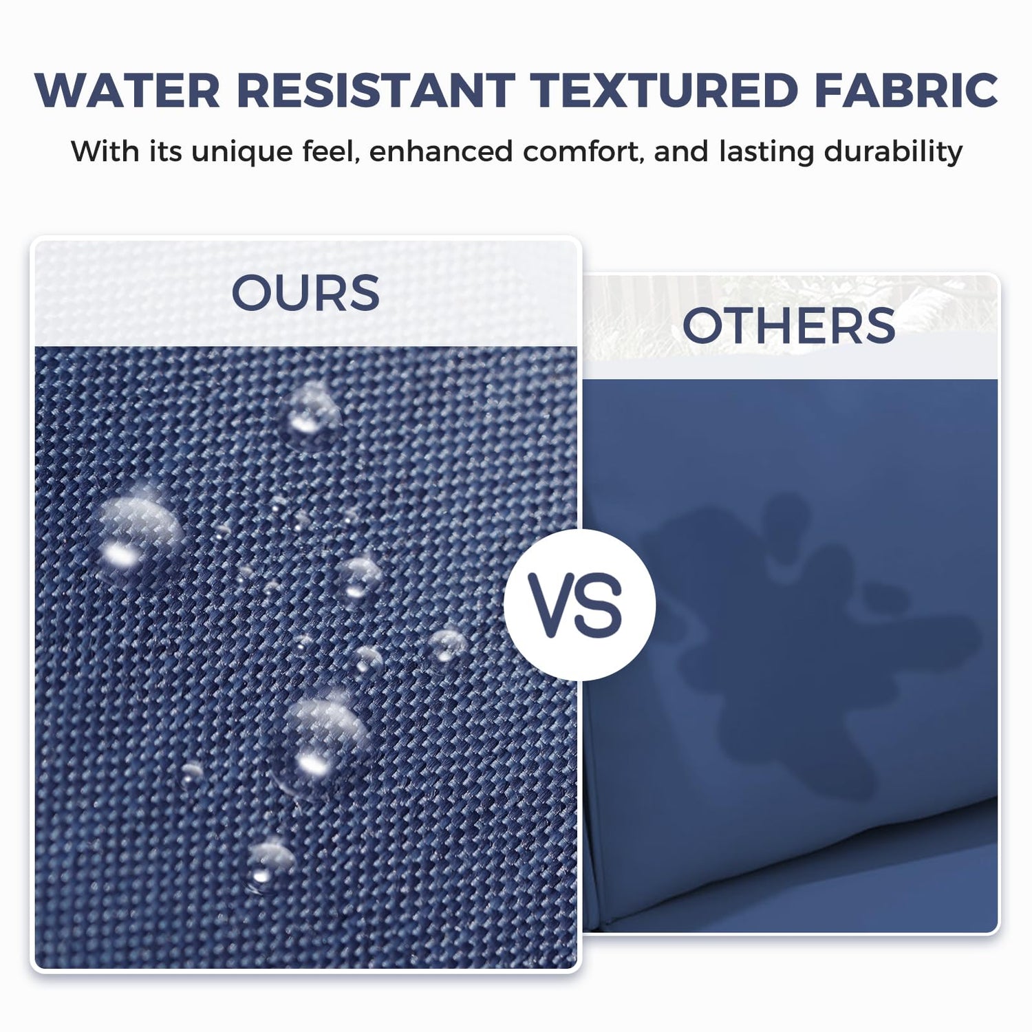 - WATER-RESISTANT CUSHIONS: Crafted from outdoor-rated cushion covers made of PU-coated polyester fabric, these cushions are UV-ray, stain, and moisture-resistant, offering superior durability compared to standard polyester. The 4'' cushions in this 9-piece outdoor conversation set provide excellent support, reducing fatigue and allowing you to relax in comfort for extended periods. Additionally, the removable cushions with smooth zippers make cleaning a breeze